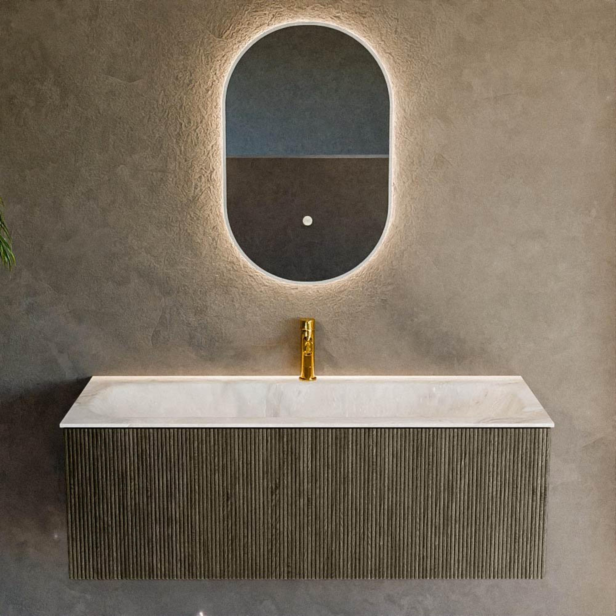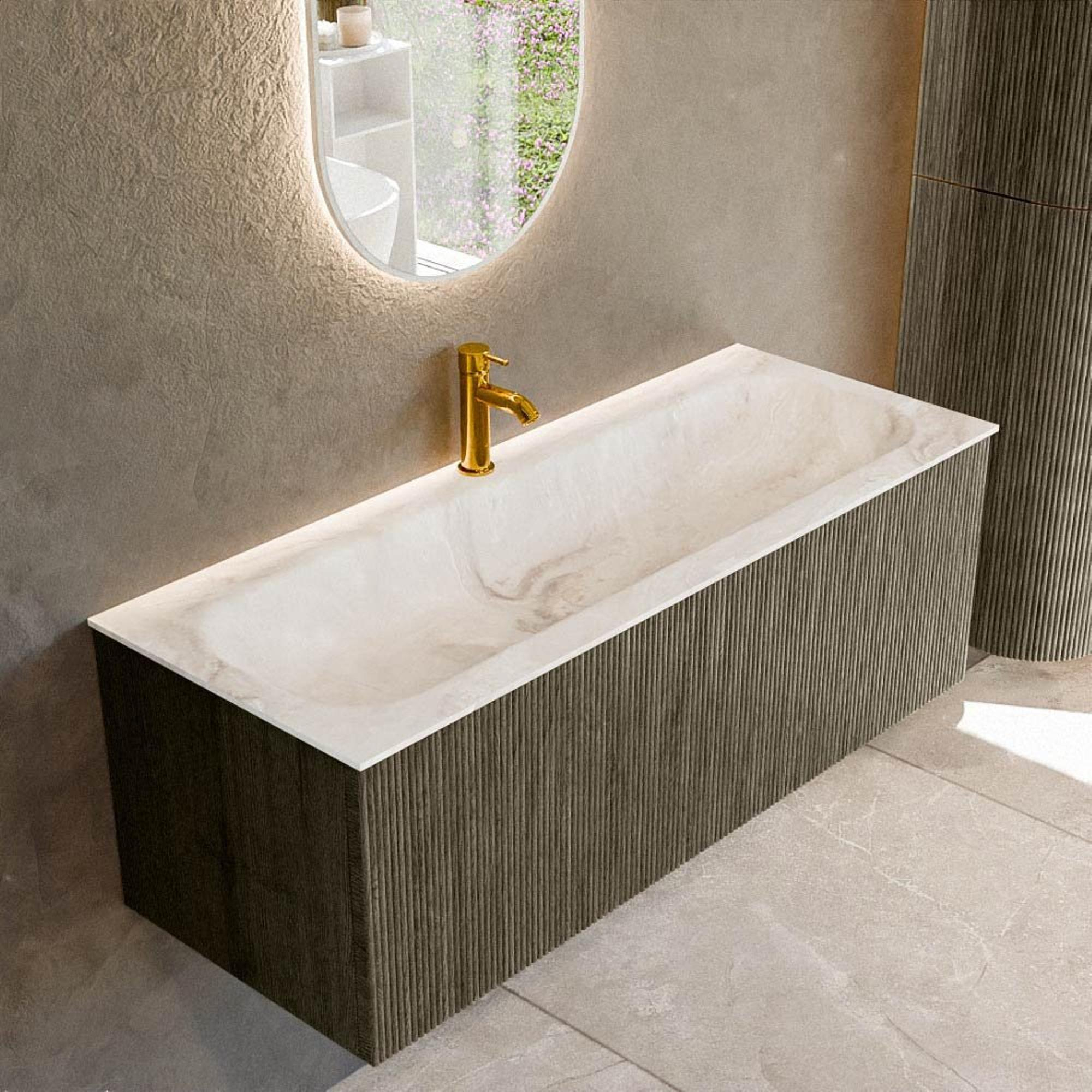 Mondiaz KURVE-DLUX Ensemble de meuble salle de bain - 120x46x40cm - 1 tiroir - lavabo en solid surface - milieu - 1 trou de robinet - Shadow