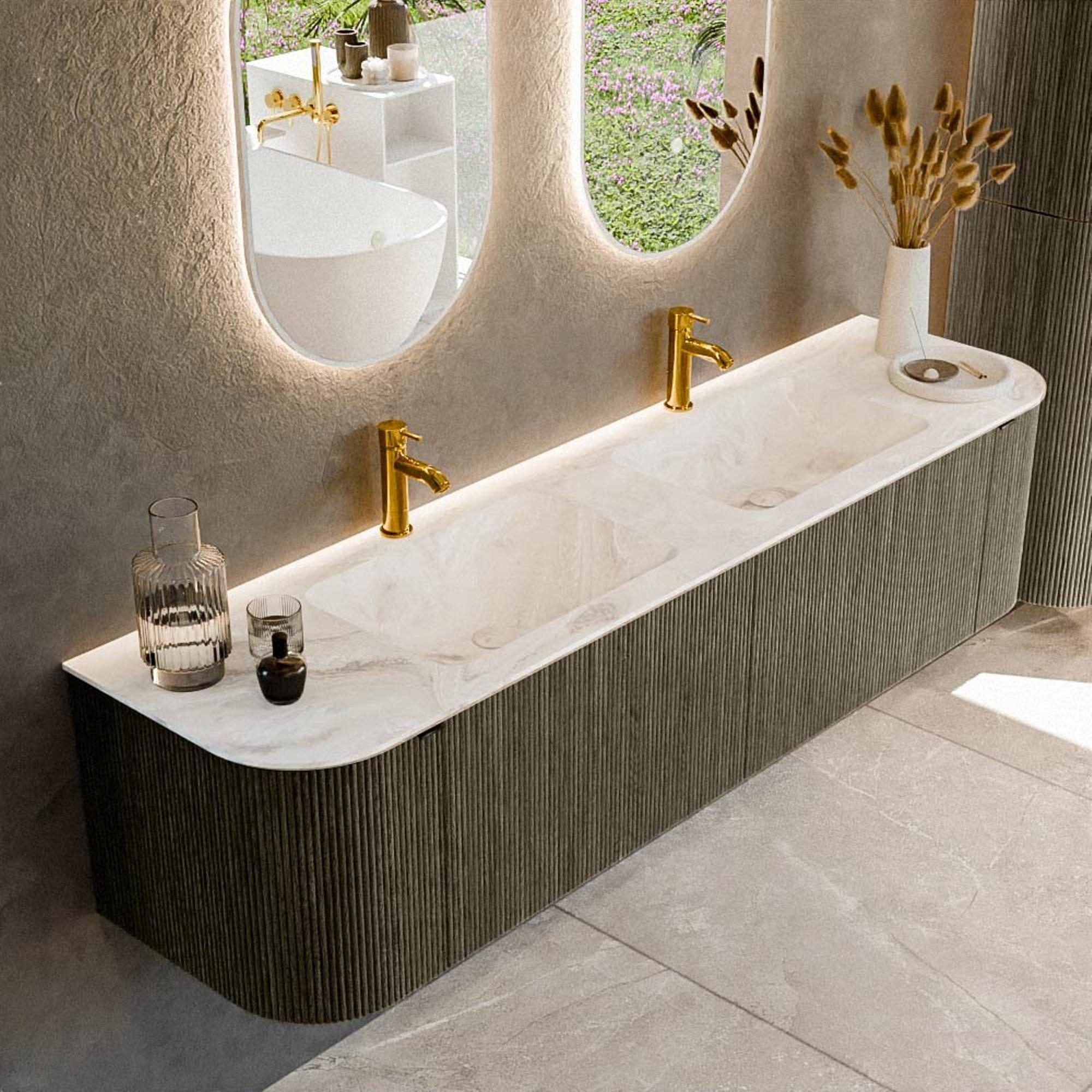 Mondiaz KURVE-DLUX Ensemble de meuble salle de bain - 180x46x40cm - 2 tiroirs - 2 portes - lavabo en solid surface - double - 2 trous de robinet - Shadow