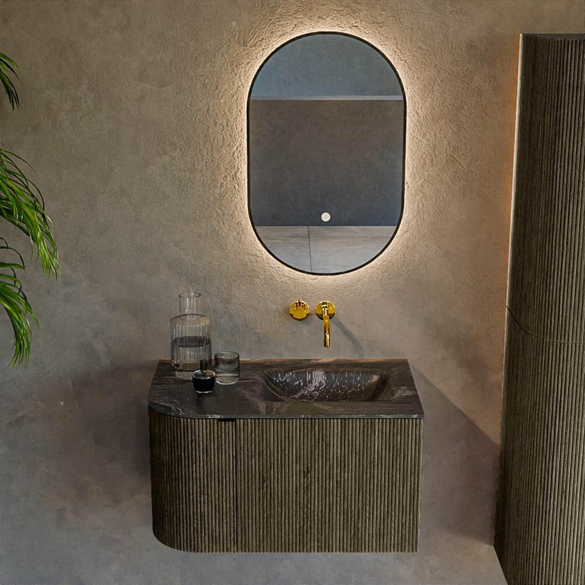 Ensemble de meuble de salle de bain Mondiaz KURVE-DLUX - 75x46x40cm - 1 tiroir - 1 porte - lavabo en solid surface - droite - sans trou de robinet - Shadow