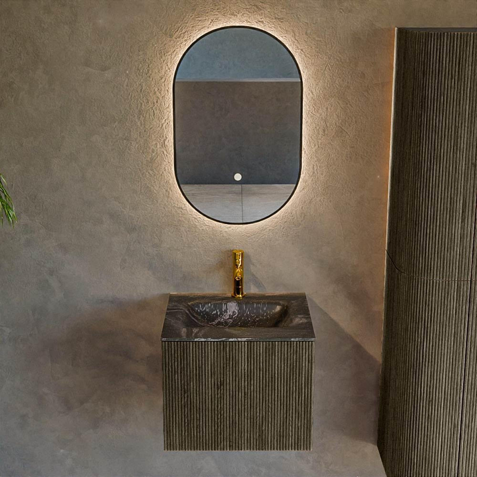 Mondiaz KURVE-DLUX Ensemble de meuble salle de bain - 50x46x40cm - 1 tiroir - lavabo en solid surface - milieu - 1 trou de robinet - Shadow