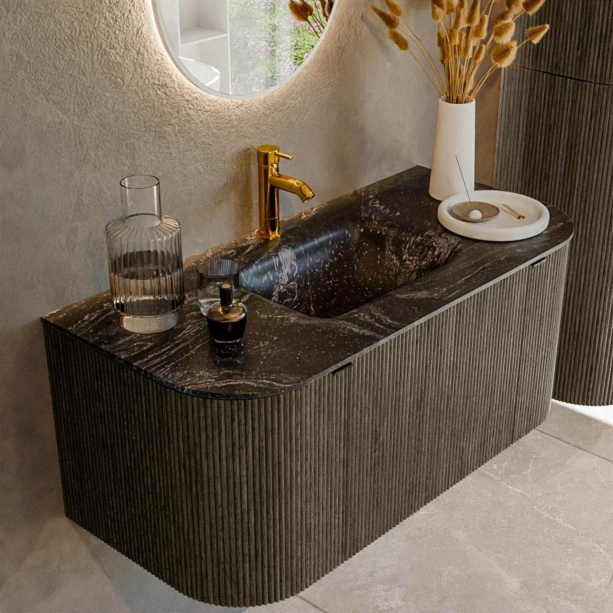 Mondiaz KURVE-DLUX Ensemble de meuble - 100x46x40cm - 1 tiroir - 2 portes - lavabo en solid surface - milieu - 1 trou de robinet - Shadow