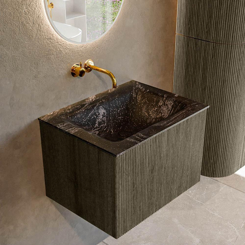 Mondiaz KURVE-DLUX Ensemble de meuble salle de bain - 60x46x40cm - 1 tiroir - lavabo en solid surface - milieu - sans trou de robinet - Shadow