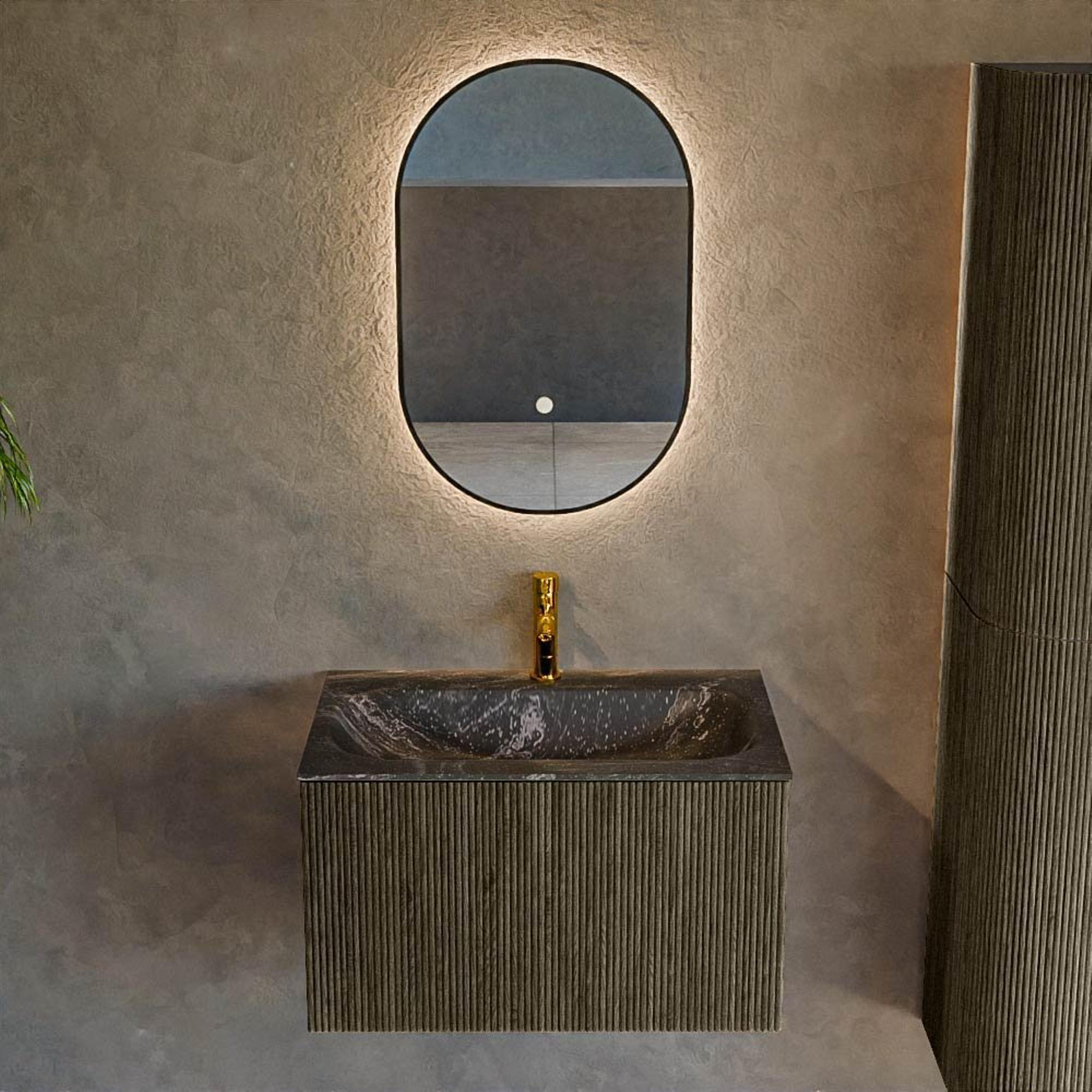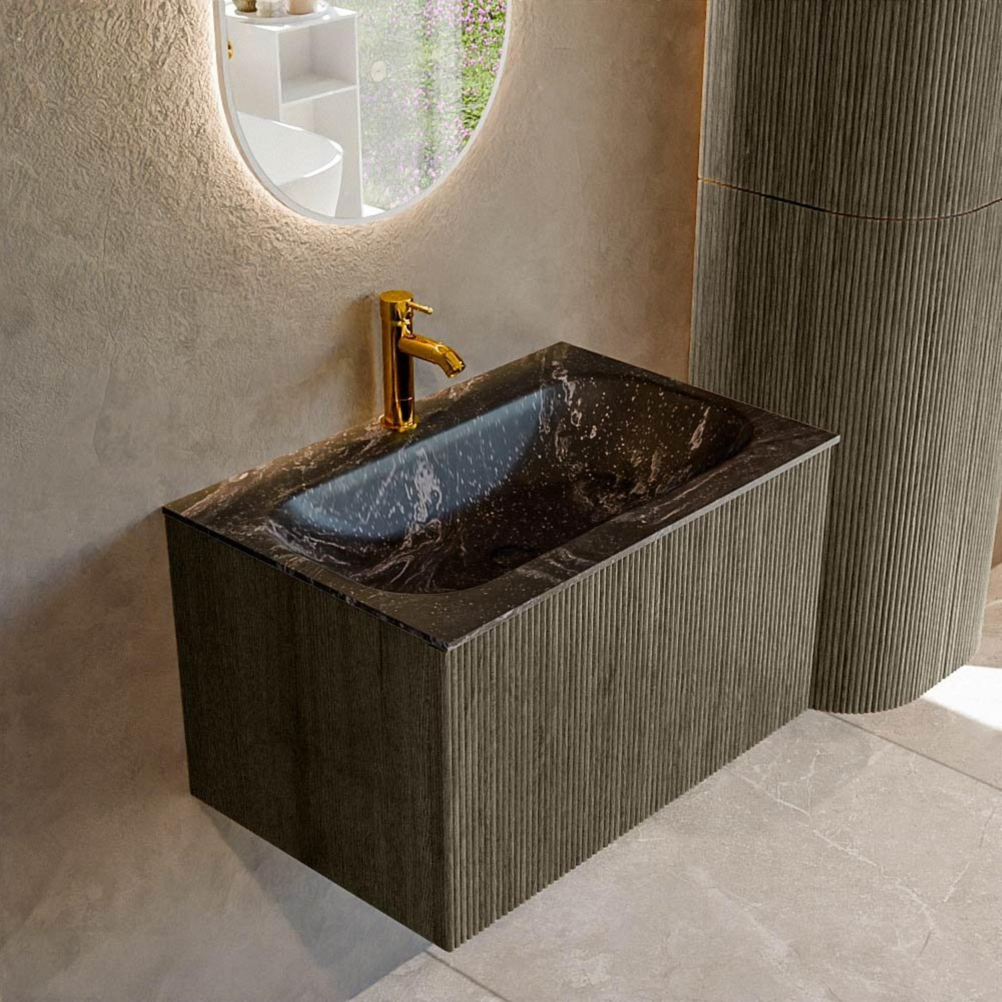Mondiaz KURVE-DLUX Ensemble de meuble salle de bain - 70x46x40cm - 1 tiroir - lavabo en solid surface - milieu - 1 trou de robinet - Shadow