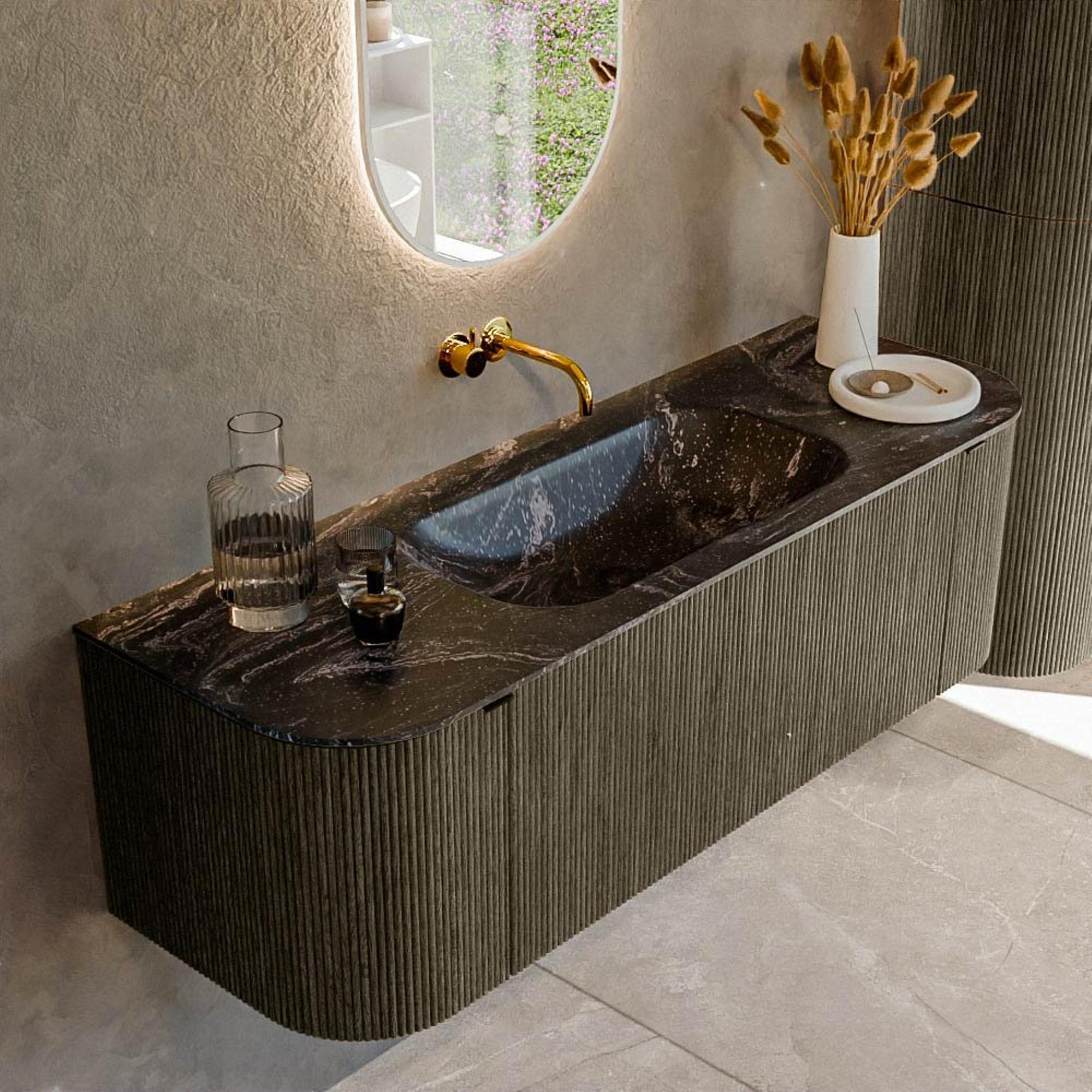 Ensemble de meuble de salle de bain Mondiaz KURVE-DLUX - 140x46x40cm - 1 tiroir - 2 portes - lavabo en solid surface - milieu - sans trou de robinet - Shadow