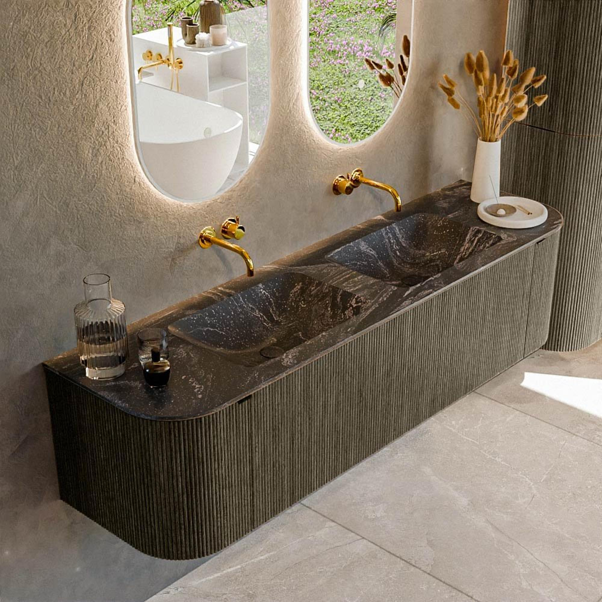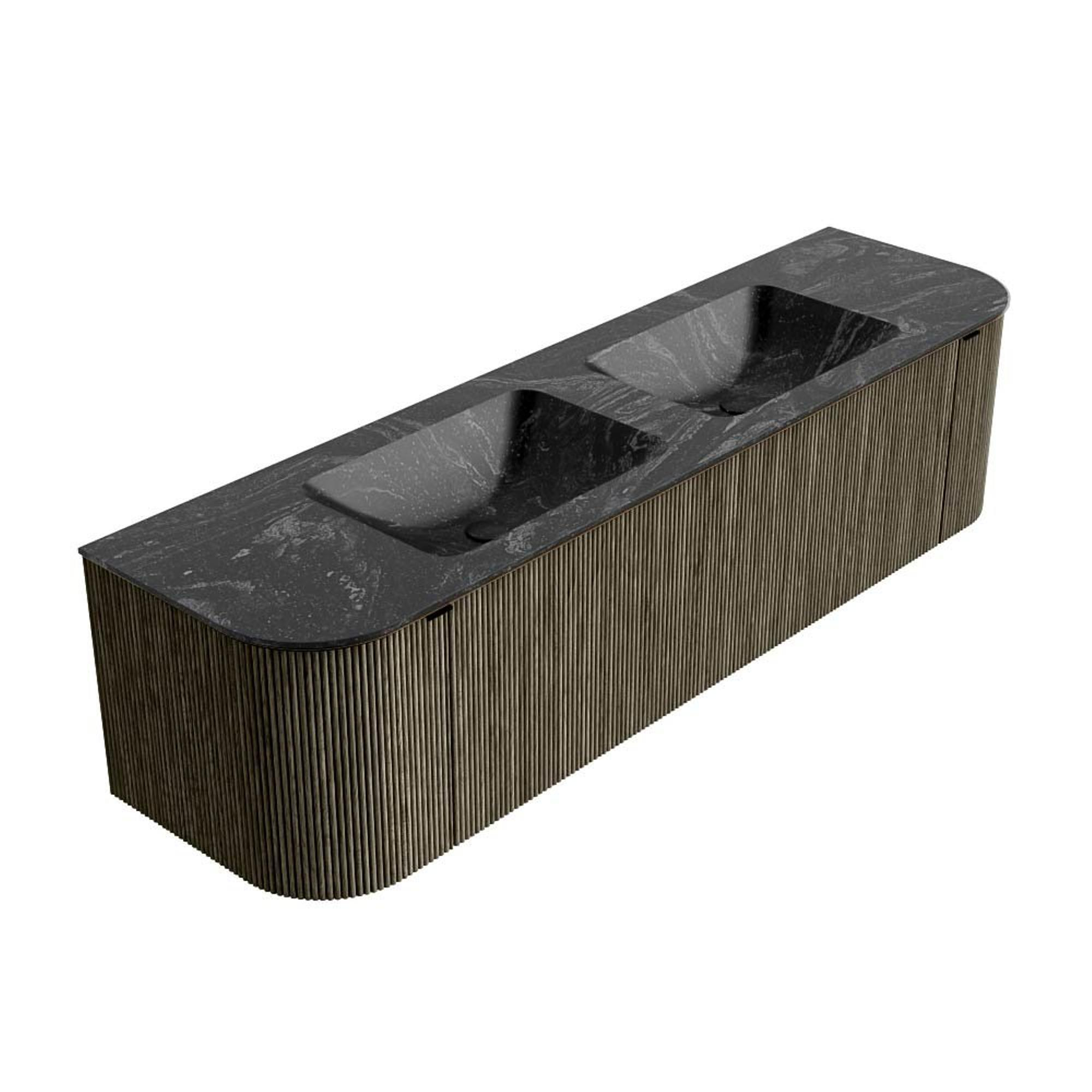 Mondiaz KURVE-DLUX Ensemble de meuble salle de bain - 170x46x40cm - 1 tiroir - 2 portes - lavabo en solid surface - double - sans trou de robinet - Shadow