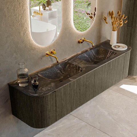 Ensemble de meuble de salle de bain Mondiaz KURVE-DLUX - 180x46x40cm - 2 tiroirs - 2 portes - lavabo en solid surface - double - sans trou de robinet - Shadow
