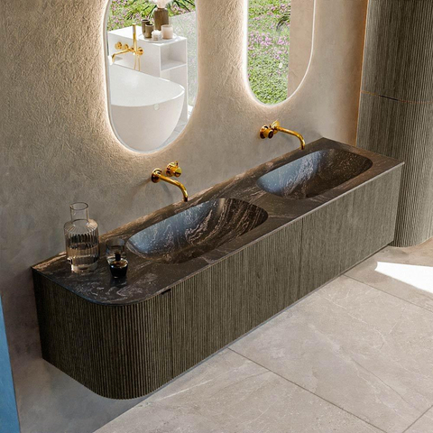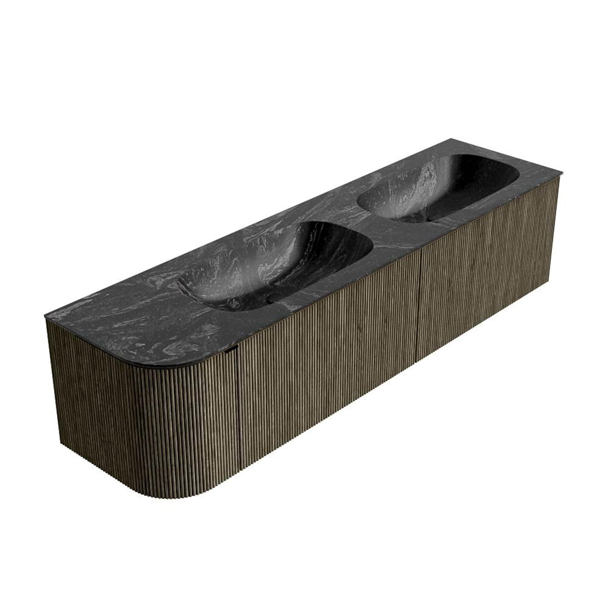 Mondiaz KURVE-DLUX Ensemble de meuble salle de bain - 175x46x40cm - 2 tiroirs - 1 porte - lavabo en solid surface - double / droite - sans trou de robinet - Shadow