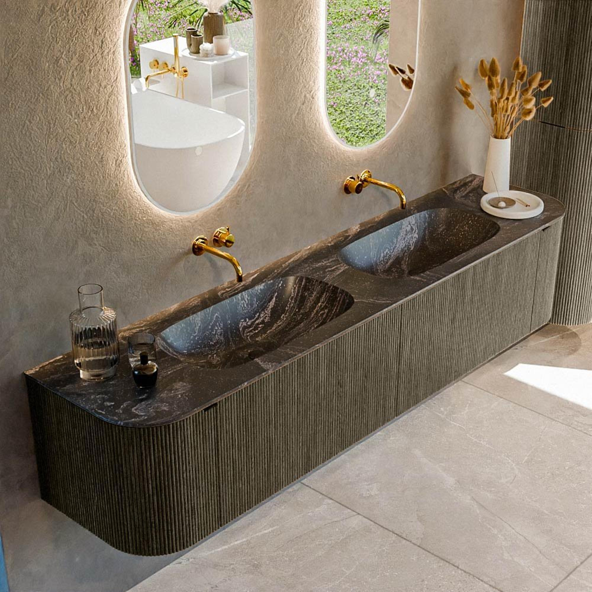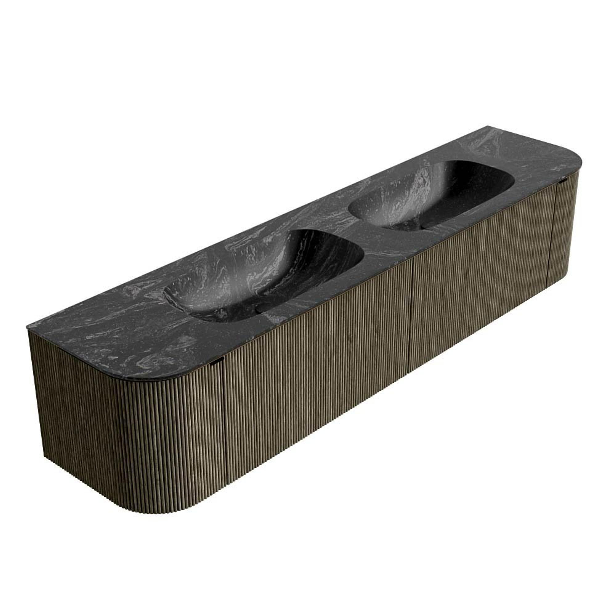 Mondiaz KURVE-DLUX Ensemble de meuble salle de bain - 200x46x40cm - 2 tiroirs - 2 portes - lavabo en solid surface - double - sans trou de robinet - Shadow