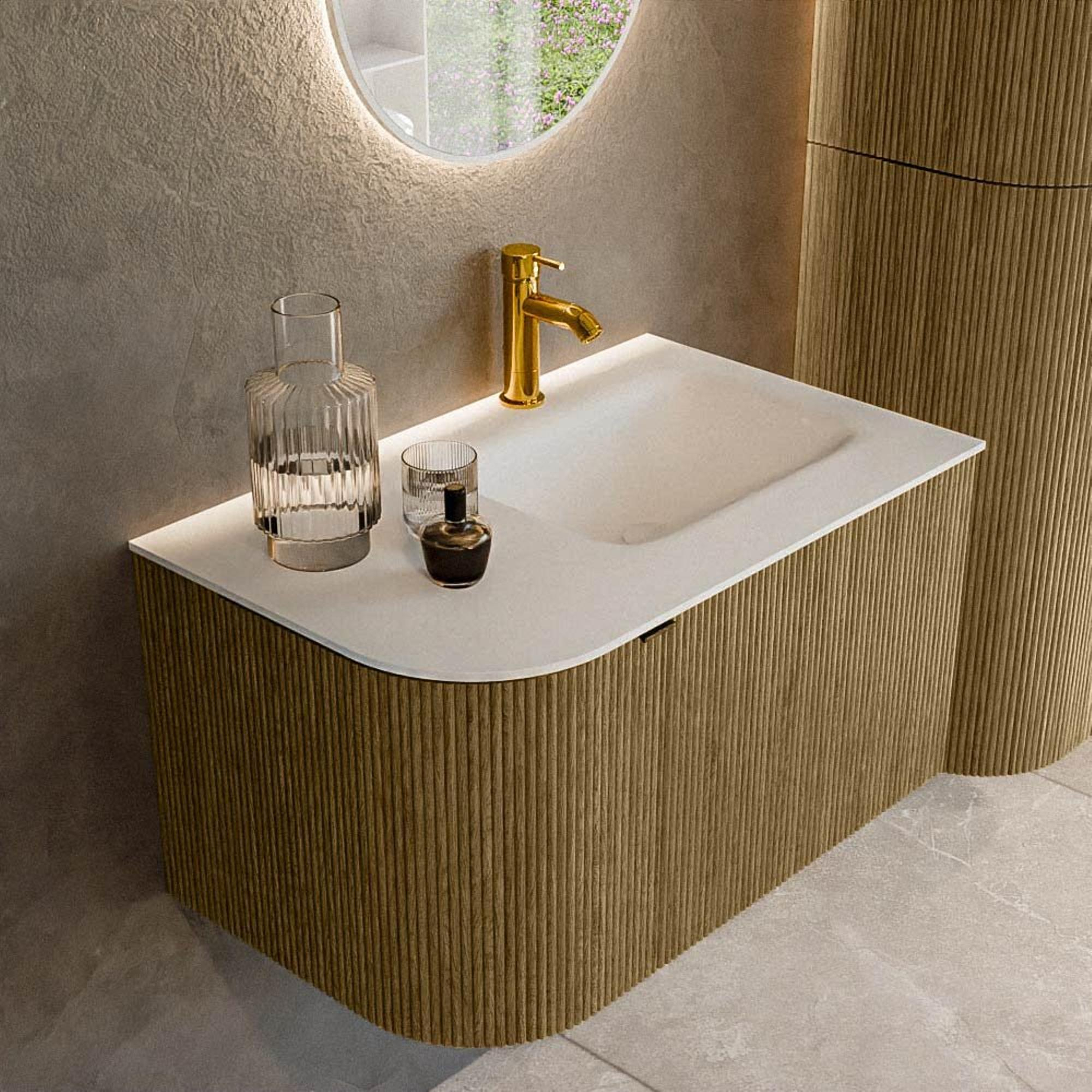 Mondiaz KURVE Ensemble de meuble salle de bain - 75x46x40cm - 1 tiroir - 1 porte - lavabo en solid surface - droite - 1 trou de robinet - Dusk