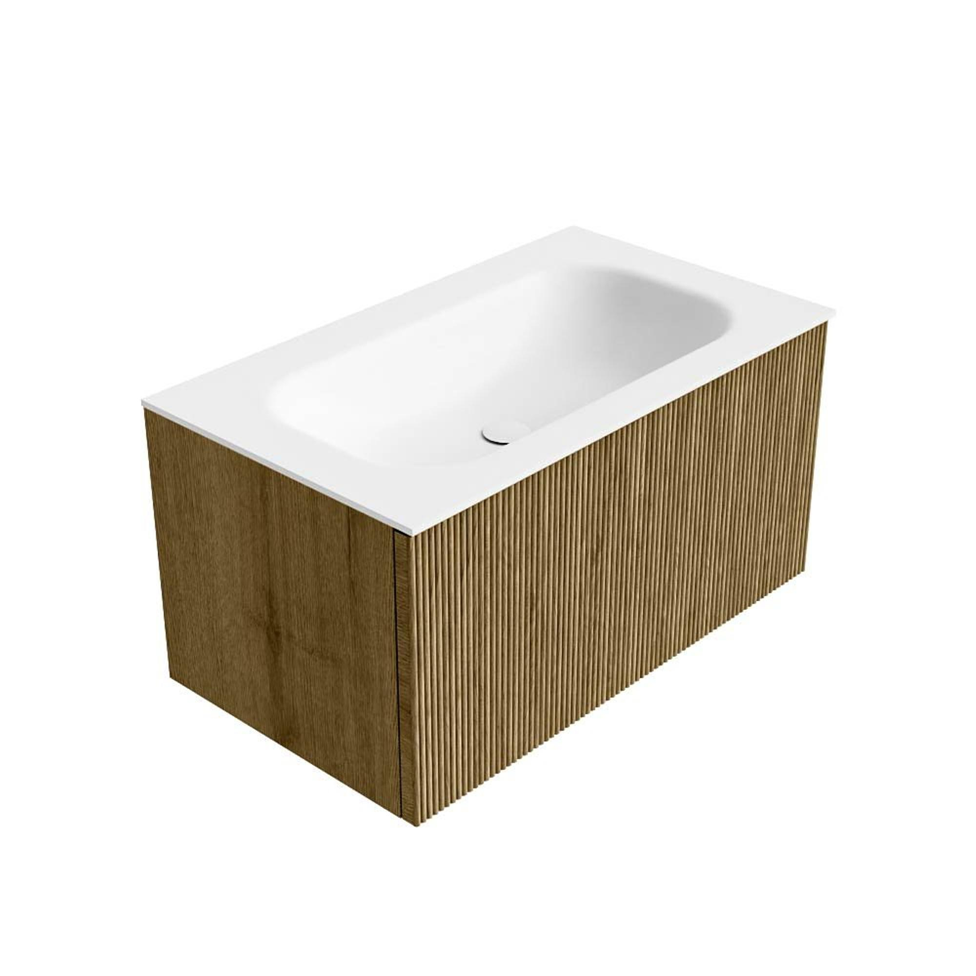 Mondiaz KURVE Ensemble de meuble salle de bain - 80x46x40cm - 1 tiroir - lavabo en solid surface - milieu - sans trou de robinet - Dusk