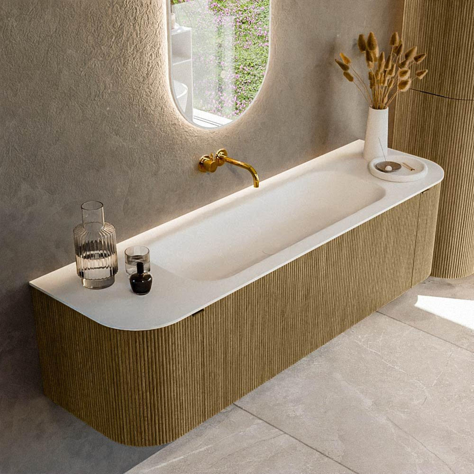 Mondiaz KURVE Ensemble de meuble salle de bain - 160x46x40cm - 1 tiroir - 2 portes - lavabo en solid surface - milieu - sans trou de robinet - Dusk