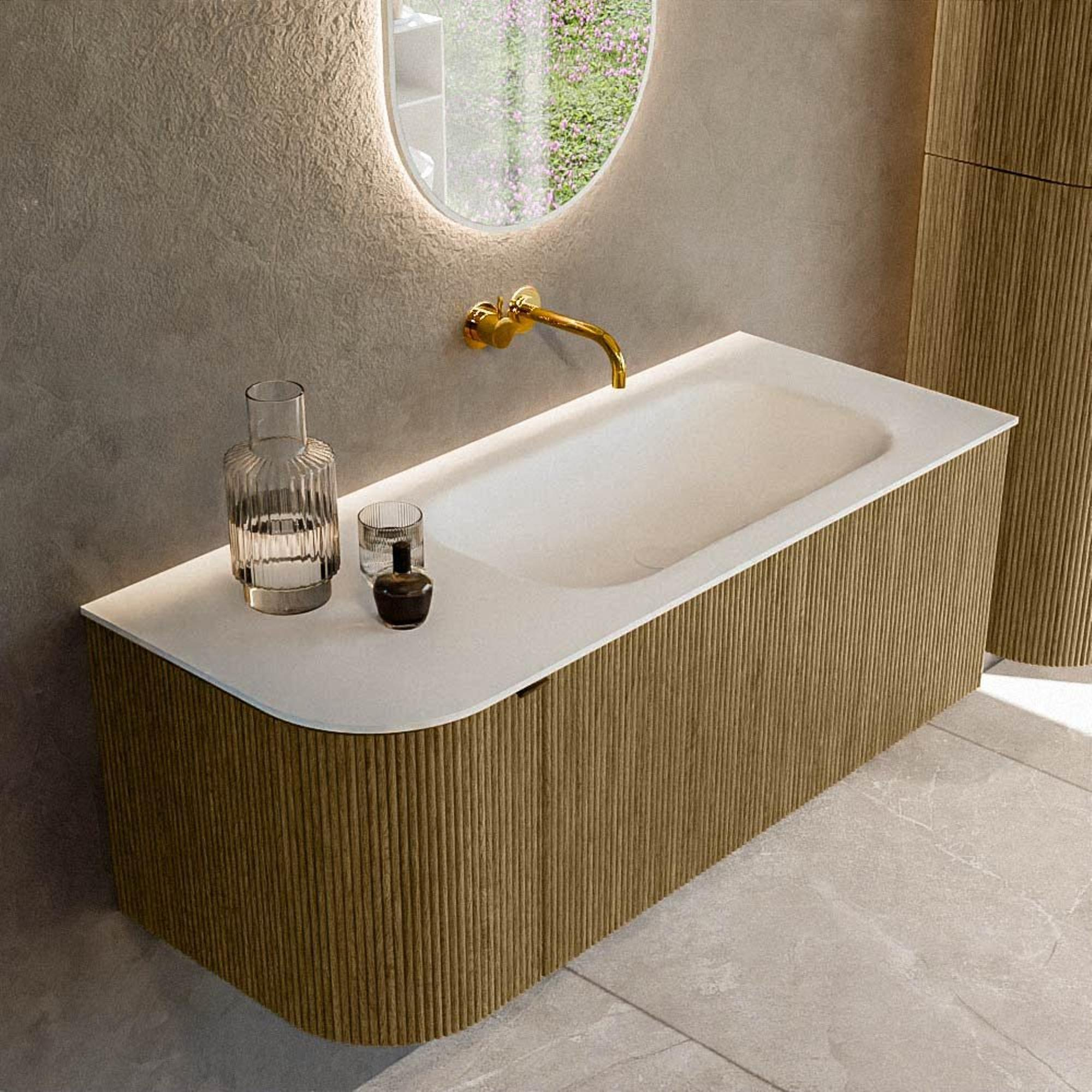 Mondiaz KURVE Ensemble de meuble salle de bain - 115x46x40cm - 1 tiroir - 1 porte - lavabo en solid surface - droite - sans trou de robinet - Dusk