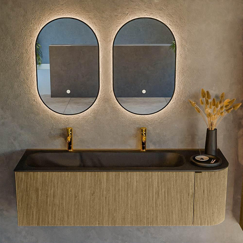 Ensemble de meuble Mondiaz KURVE - 145x46x40cm - 1 tiroir - 1 porte - lavabo en solid surface - gauche - 2 trous de robinet - Dusk