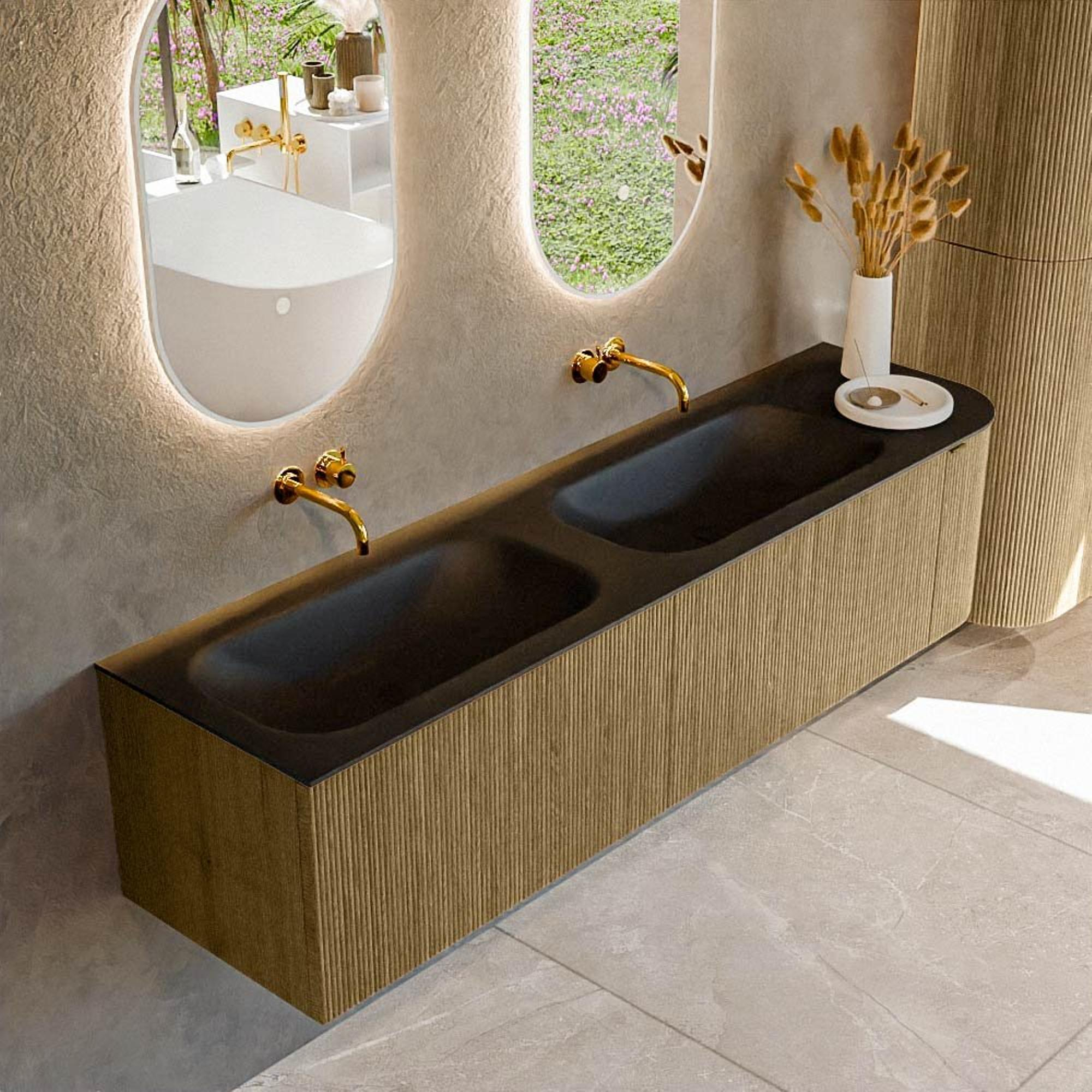 Ensemble de meuble Mondiaz KURVE - 175x46x40cm - 2 tiroirs - 1 porte - lavabo en solid surface - double / gauche - sans trou de robinet - Dusk