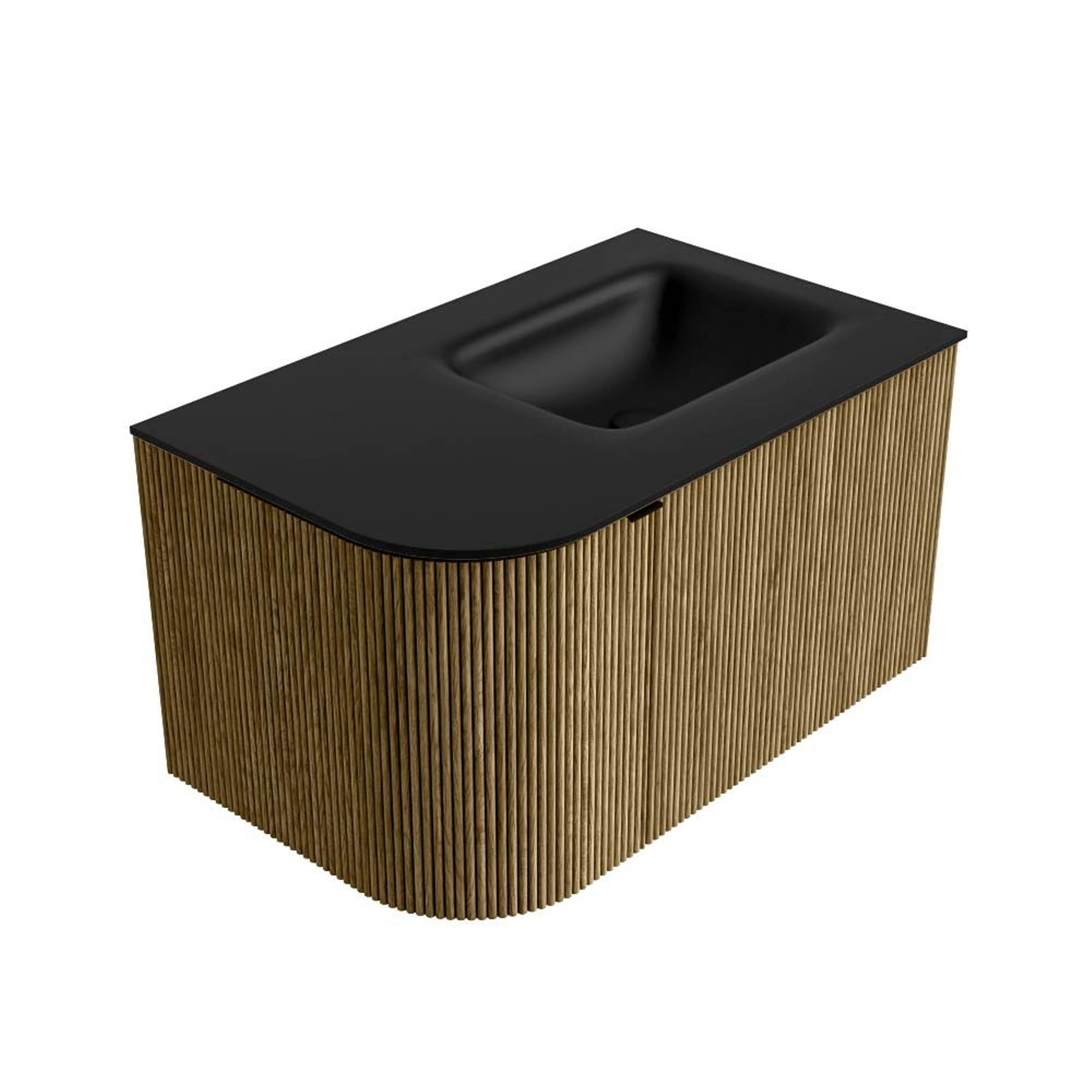 Ensemble de meuble de salle de bain Mondiaz KURVE - 75x46x40cm - 1 tiroir - 1 porte - lavabo en solid surface - droite - sans trou de robinet - Dusk