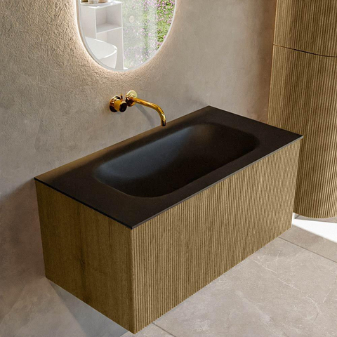 Mondiaz KURVE Ensemble de meuble salle de bain - 90x46x40cm - 1 tiroir - lavabo en solid surface - milieu - sans trou de robinet - Dusk