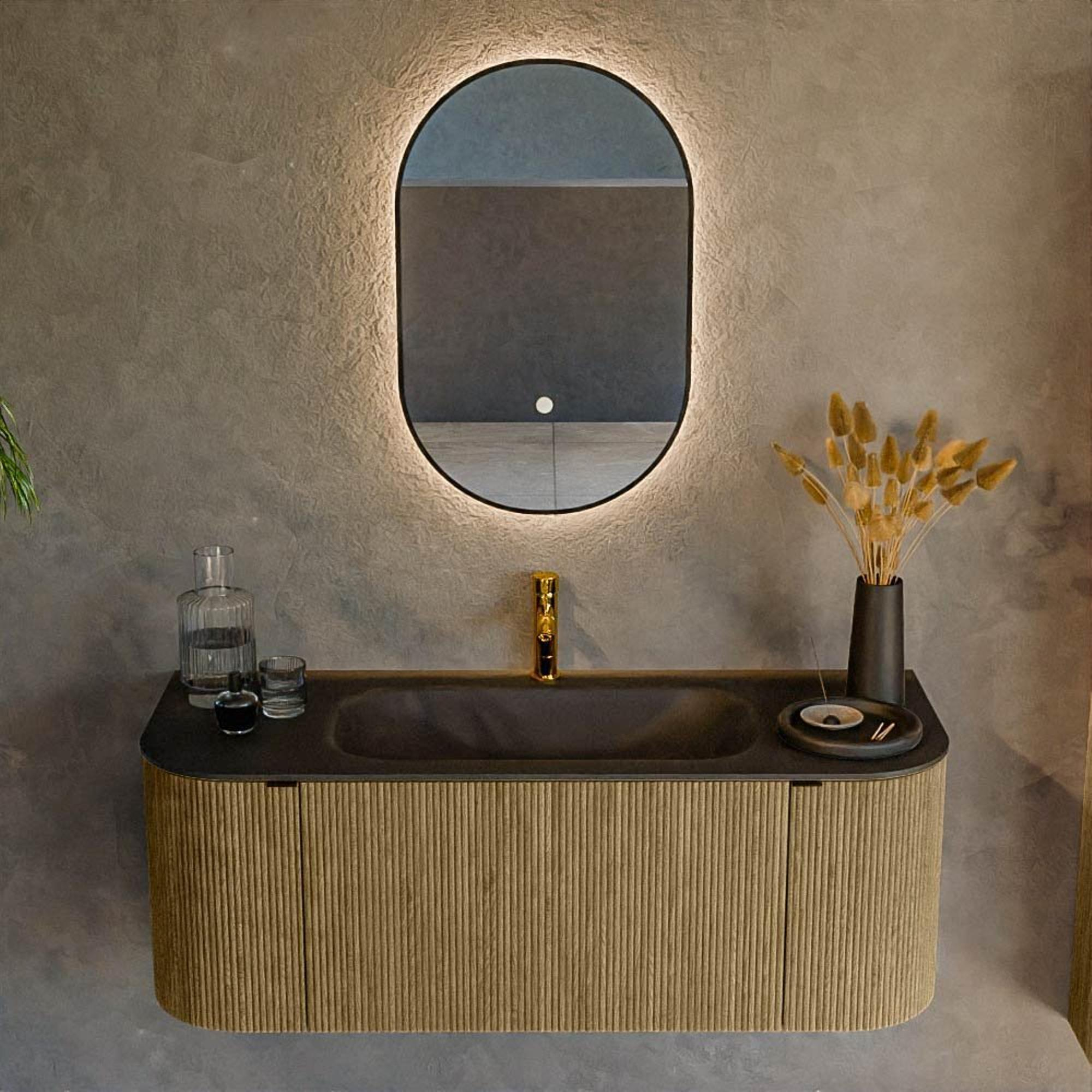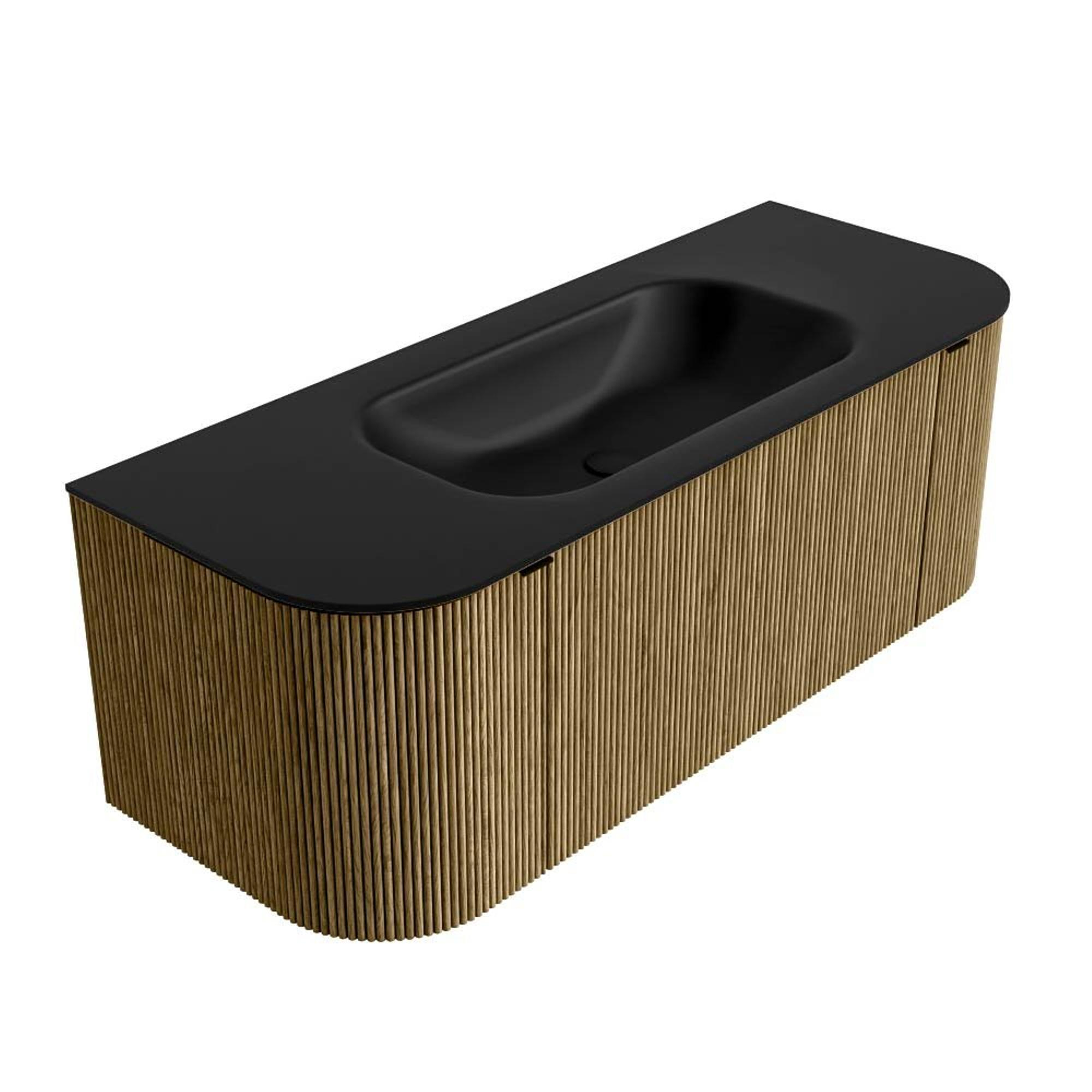 Mondiaz KURVE Ensemble de meuble salle de bain - 120x46x40cm - 1 tiroir - 2 portes - lavabo en solid surface - milieu - 1 trou de robinet - Dusk