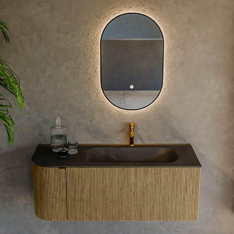 Mondiaz KURVE Ensemble de meuble salle de bain - 115x46x40cm - 1 tiroir - 1 porte - lavabo en solid surface - droite - 1 trou de robinet - Dusk