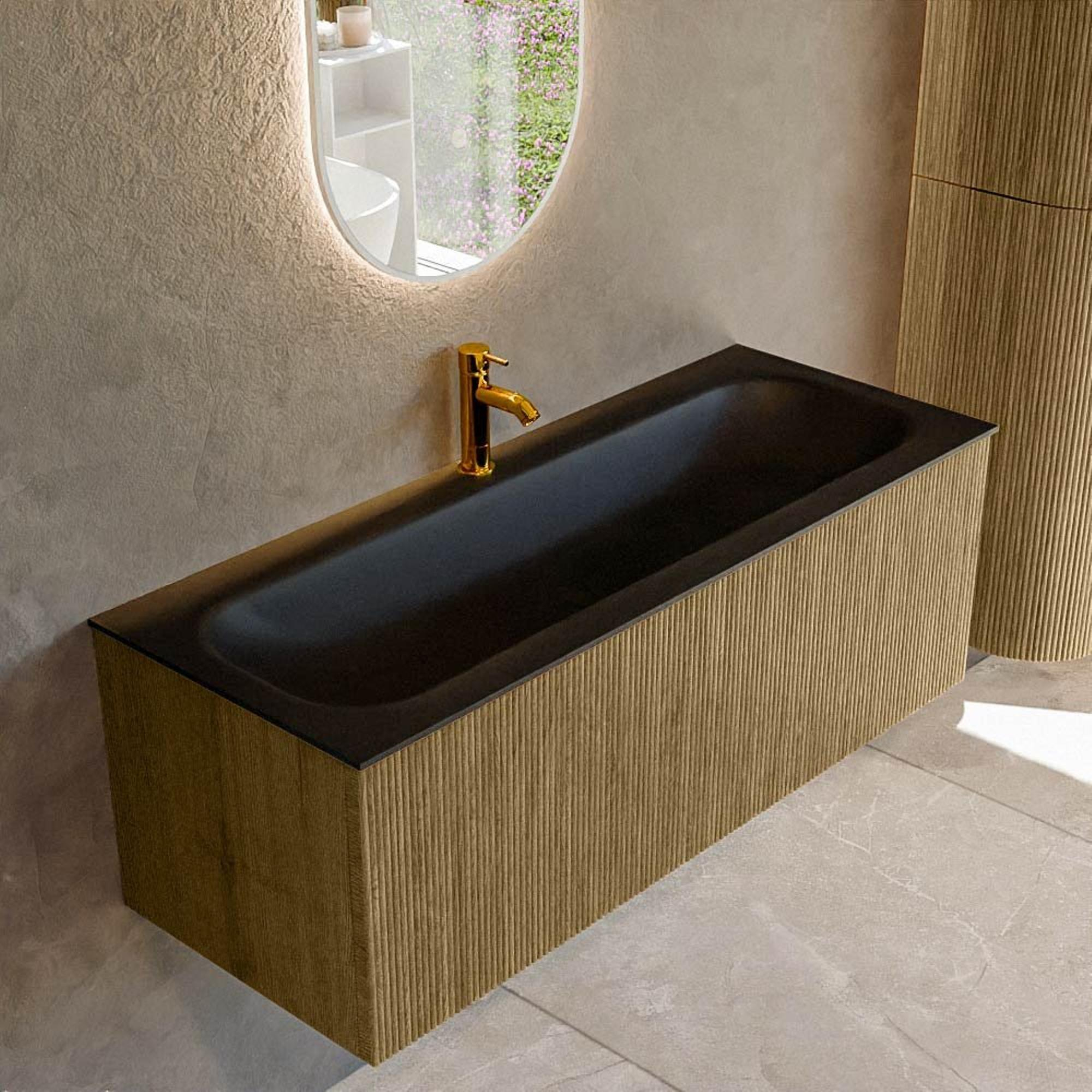 Mondiaz KURVE Ensemble de meuble salle de bain - 120x46x40cm - 1 tiroir - lavabo en solid surface - milieu - 1 trou de robinet - Dusk