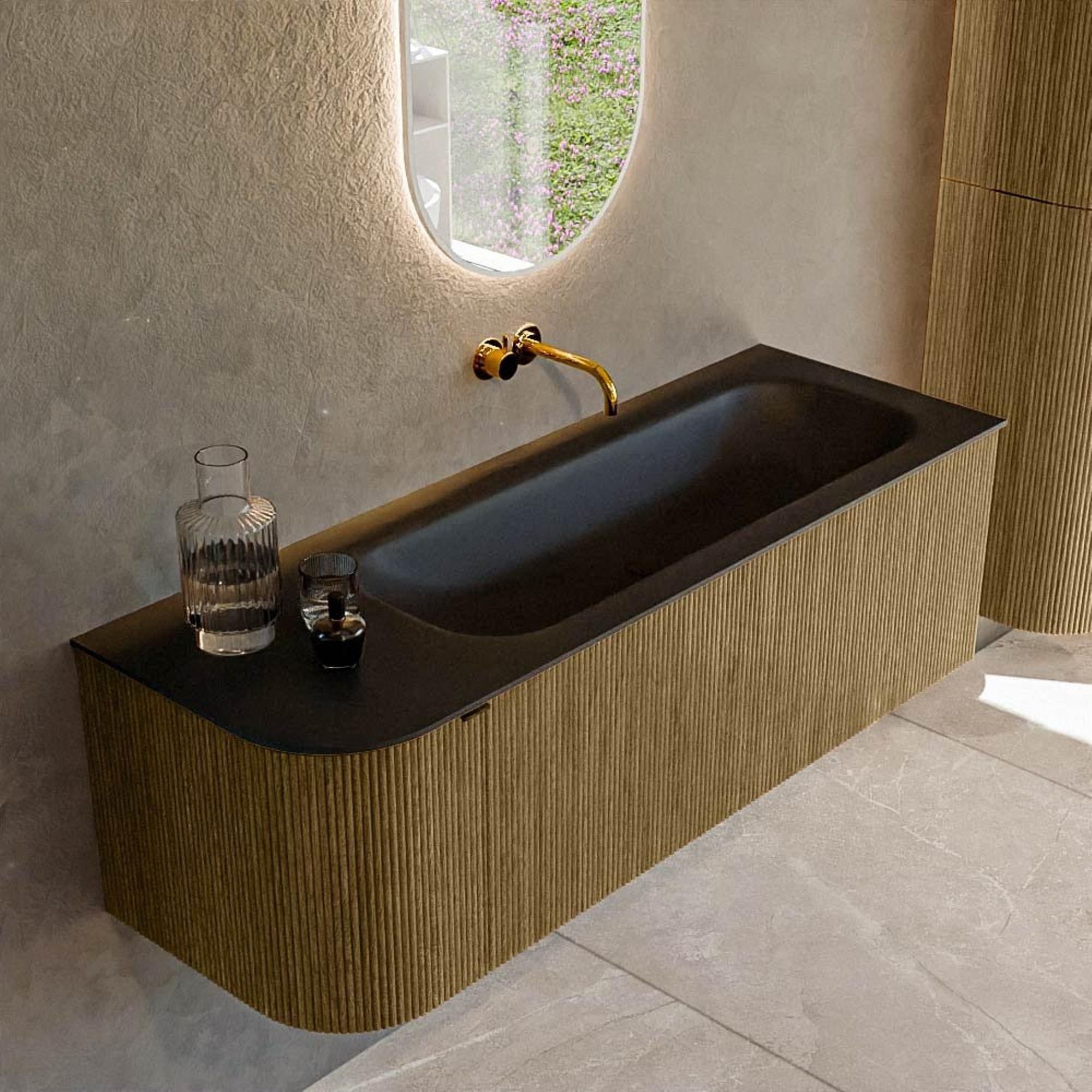 Mondiaz KURVE Ensemble de meuble salle de bain - 135x46x40cm - 1 tiroir - 1 porte - lavabo en solid surface - droite - sans trou de robinet - Dusk