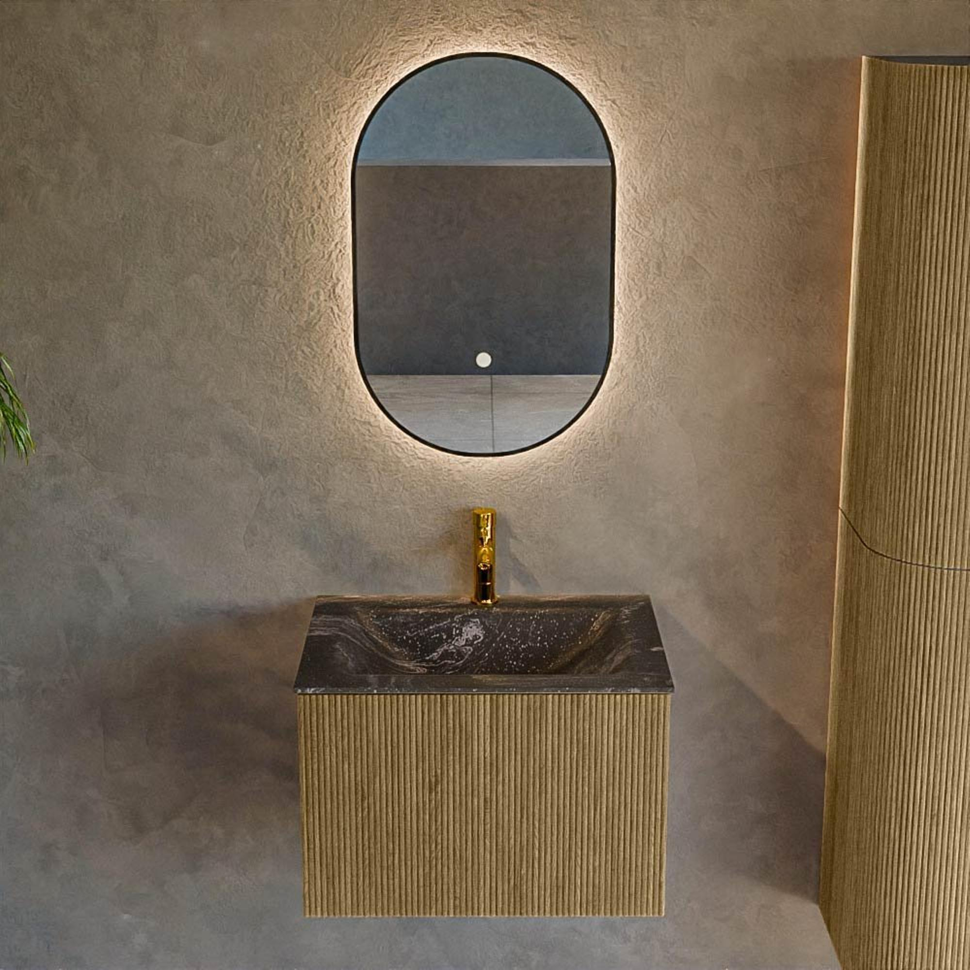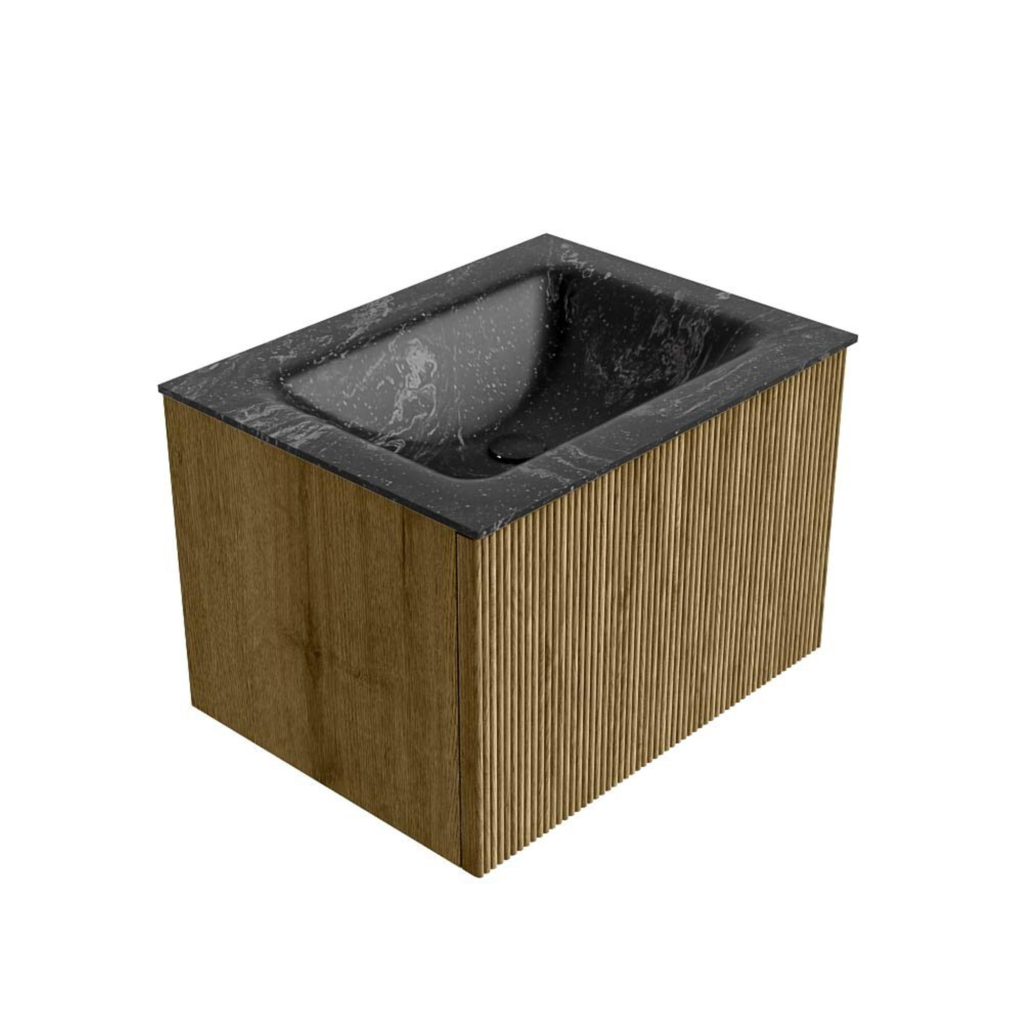 Ensemble de meuble de salle de bain Mondiaz KURVE-DLUX - 60x46x40cm - 1 tiroir - lavabo en solid surface - milieu - 1 trou de robinet - Dusk