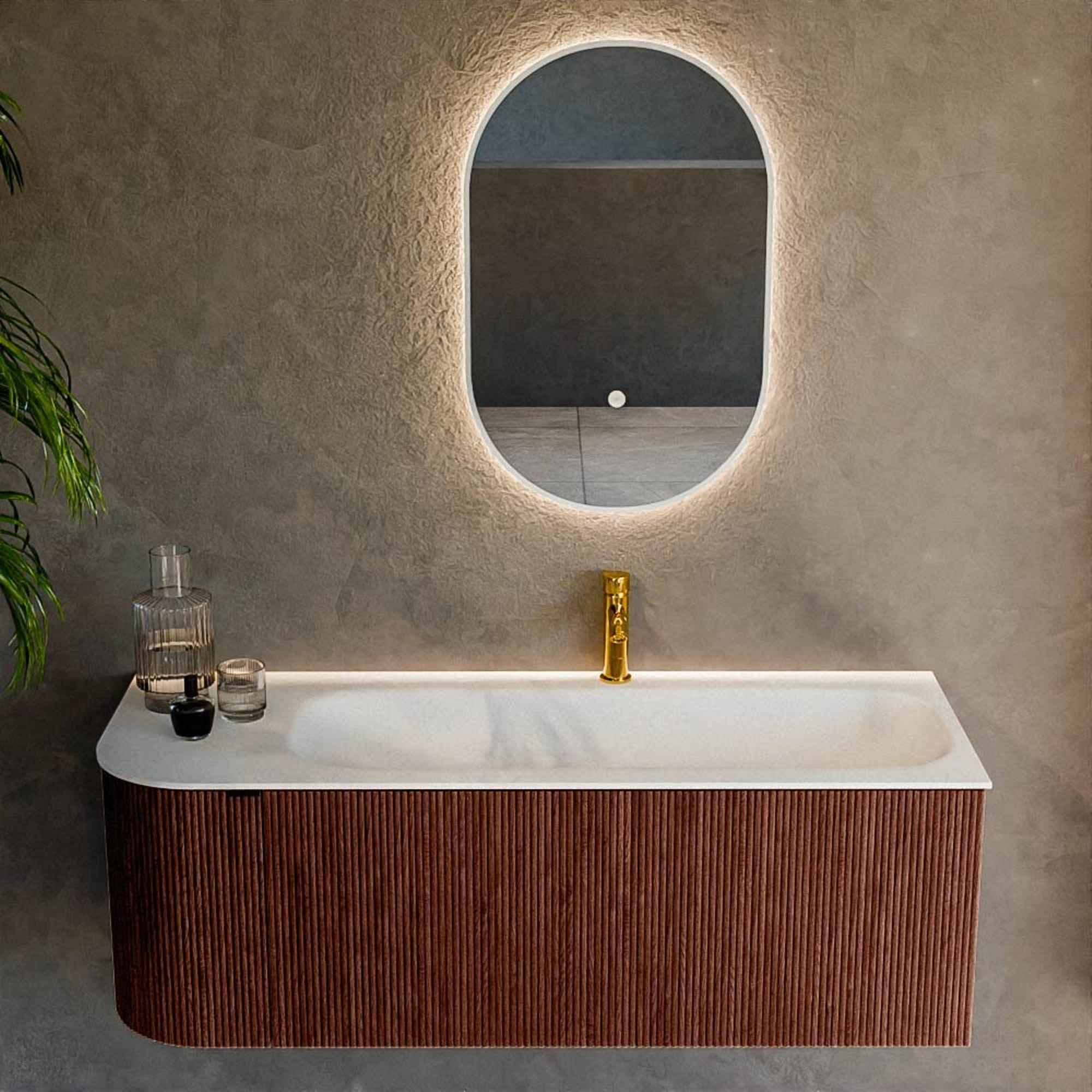 Mondiaz KURVE Ensemble de meuble salle de bain - 125x46x40cm - 1 tiroir - 1 porte - lavabo en solid surface - droite - 1 trou de robinet - Ruby