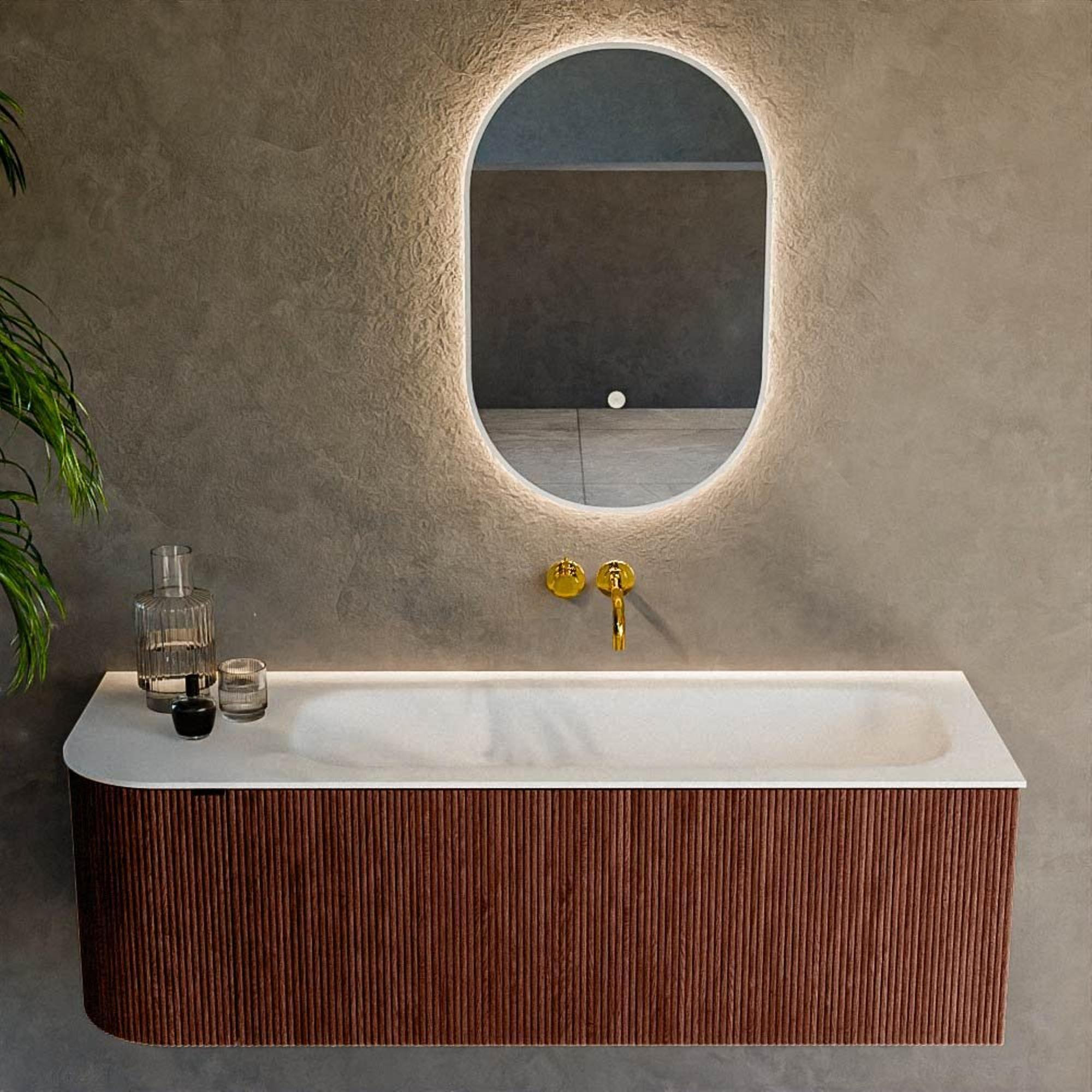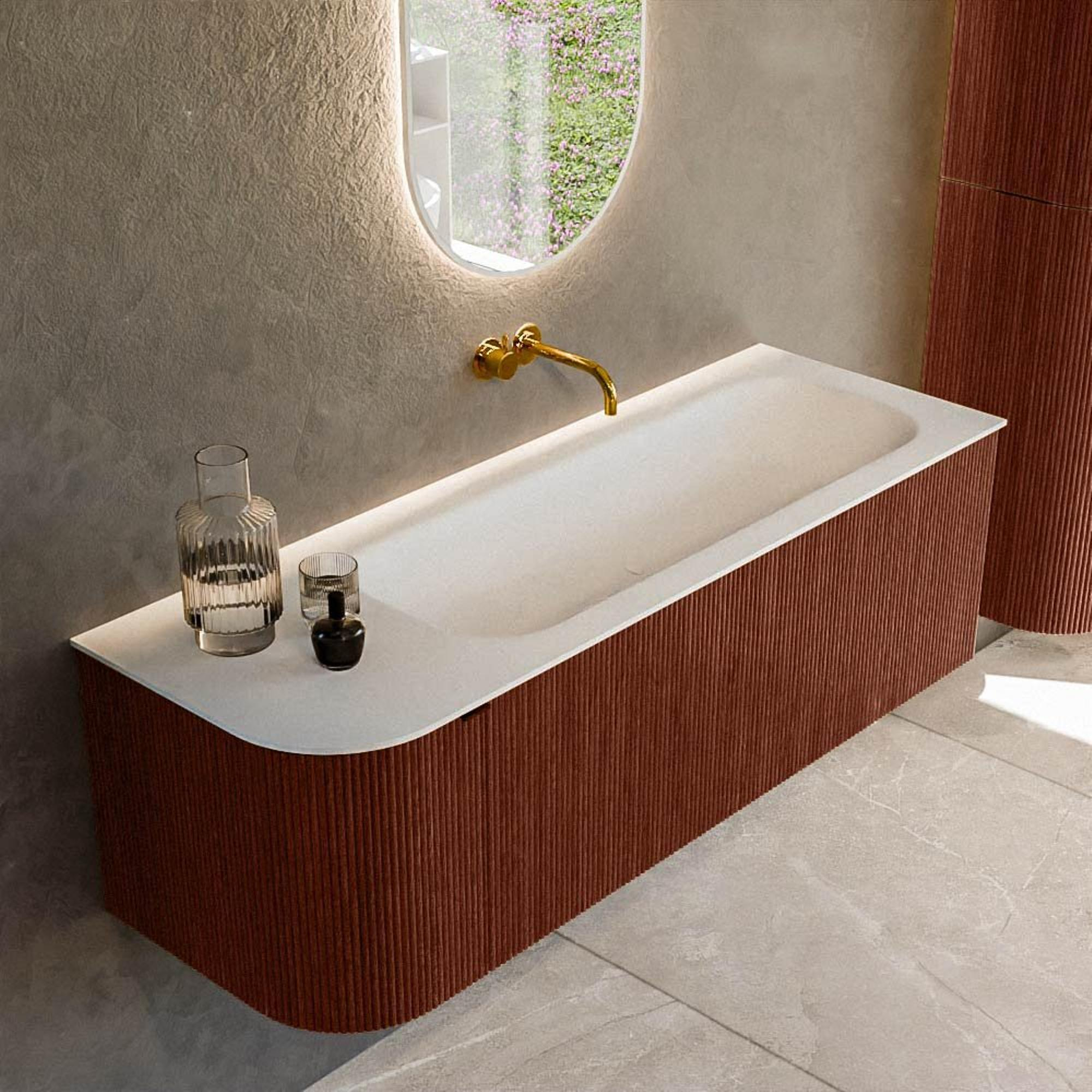 Ensemble de meuble de salle de bain Mondiaz KURVE - 135x46x40cm - 1 tiroir - 1 porte - lavabo en solid surface - droite - sans trou de robinet - Ruby