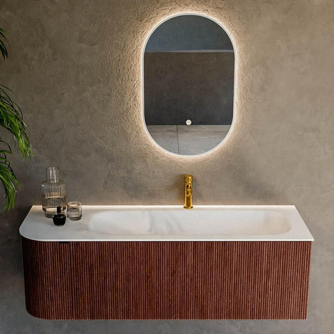Mondiaz KURVE Ensemble de meuble salle de bain - 135x46x40cm - 1 tiroir - 1 porte - lavabo en solid surface - droite - 1 trou de robinet - Ruby