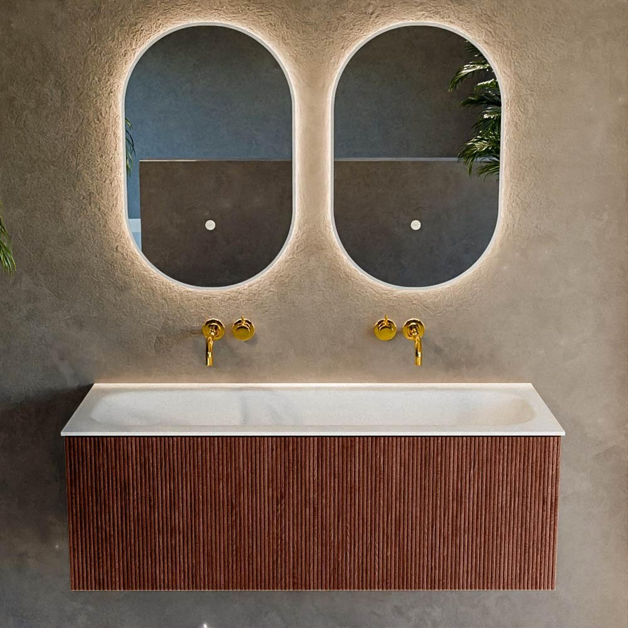 Mondiaz KURVE Ensemble de meuble salle de bain - 120x46x40cm - 1 tiroir - lavabo en solid surface - milieu - sans trou de robinet - Ruby