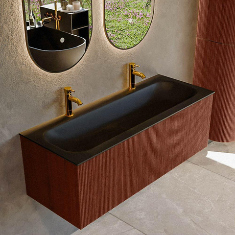 Ensemble de meuble de salle de bain Mondiaz KURVE - 120x46x40cm - 1 tiroir - lavabo en solid surface - centre - 2 trous de robinet - Ruby