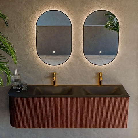 Mondiaz KURVE Ensemble de meuble salle de bain - 145x46x40cm - 1 tiroir - 1 porte - lavabo en solid surface - double / droite - 2 trous de robinet - Ruby