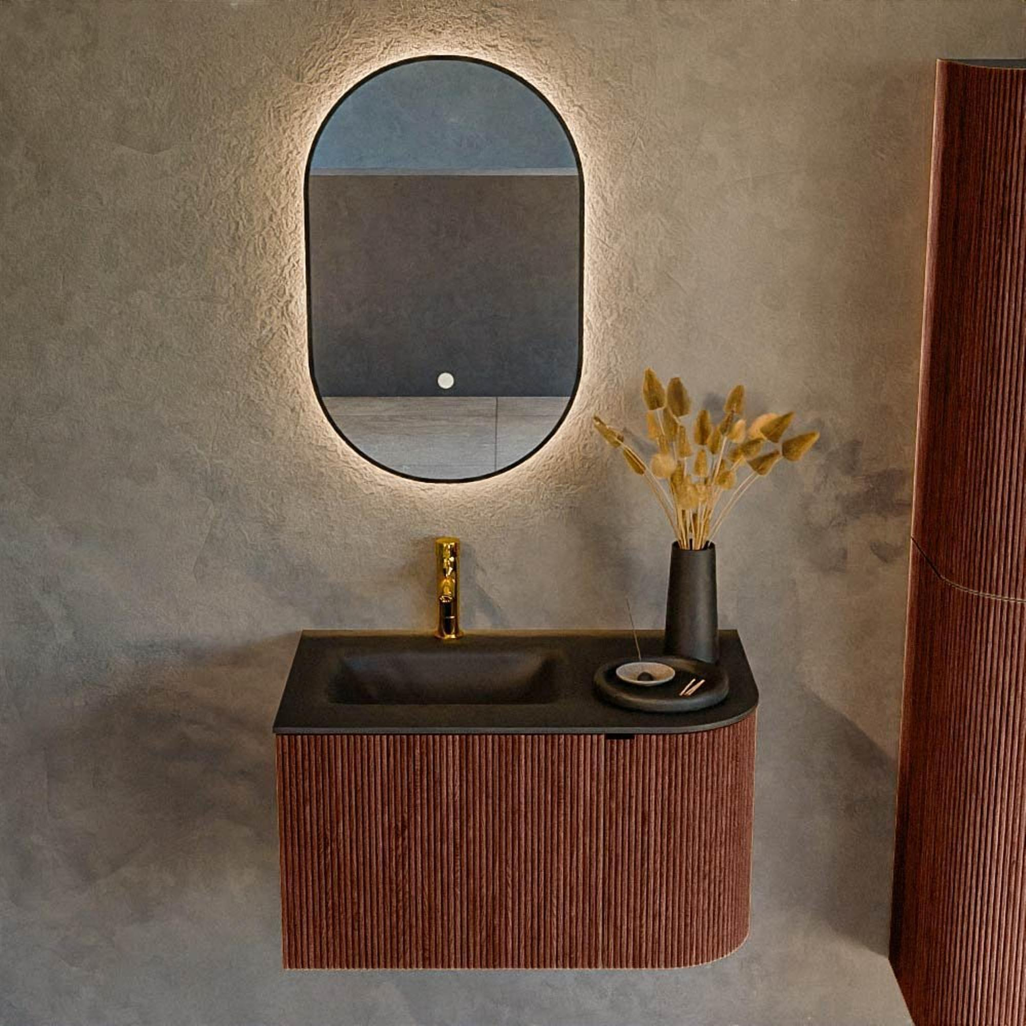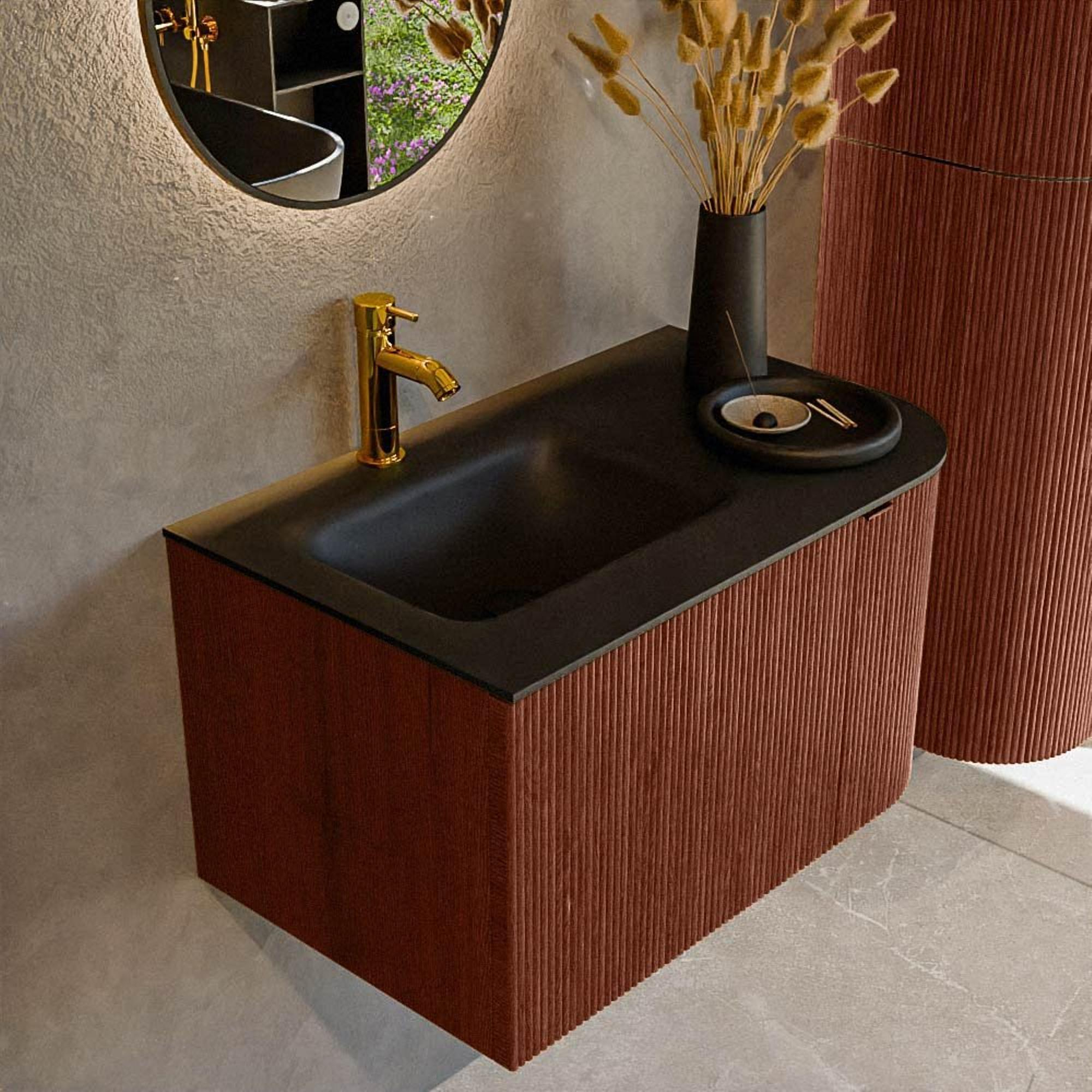 Mondiaz KURVE Ensemble de meuble salle de bain - 75x46x40cm - 1 tiroir - 1 porte - lavabo en solid surface - gauche - 1 trou de robinet - Ruby