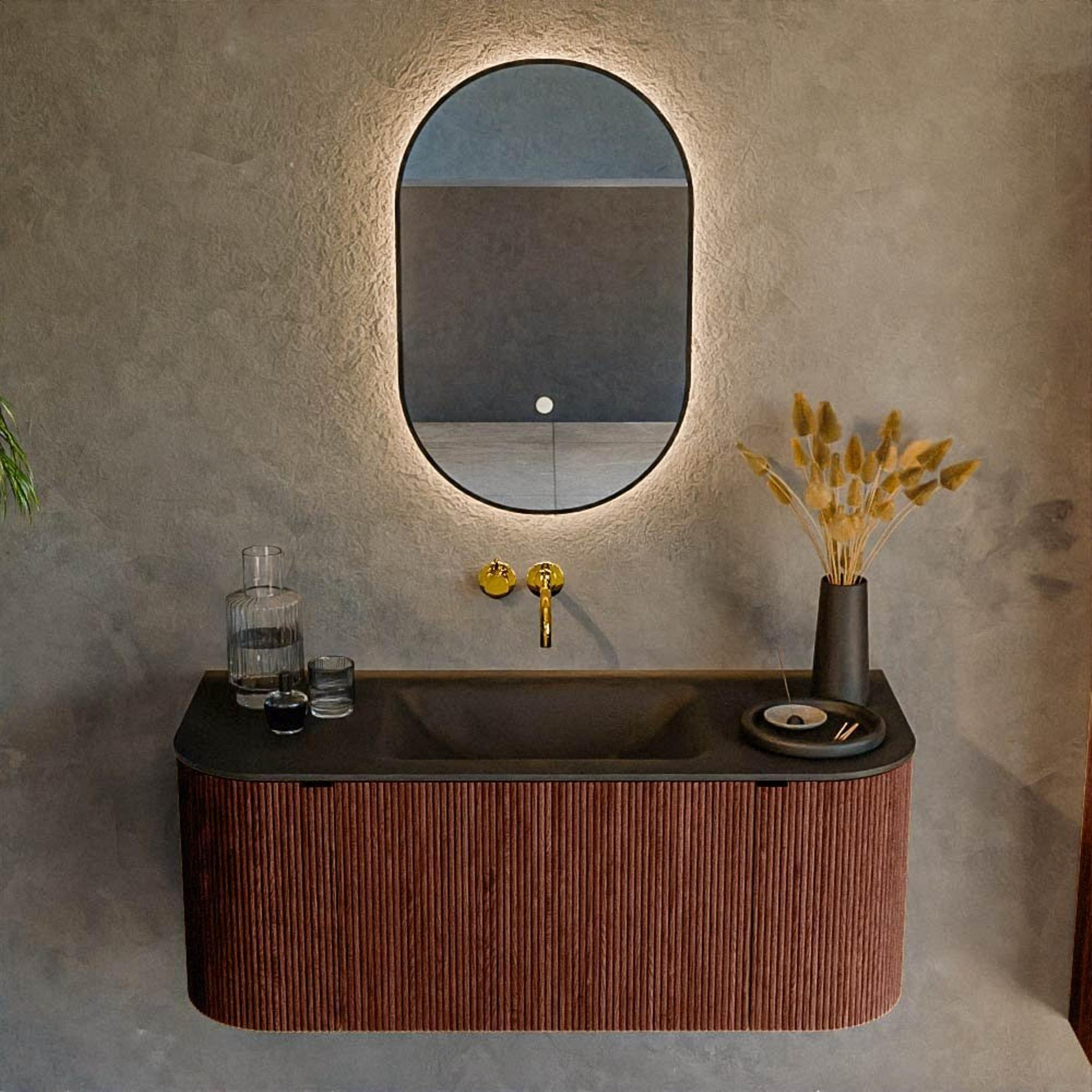 Ensemble de meuble de salle de bain Mondiaz KURVE - 110x46x40cm - 1 tiroir - 2 portes - lavabo en solid surface - milieu - sans trou de robinet - Ruby