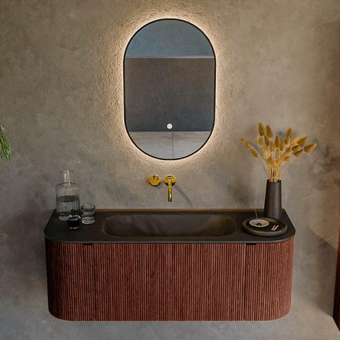 Ensemble de meuble salle de bain Mondiaz KURVE - 120x46x40cm - 1 tiroir - 2 portes - lavabo en solid surface - milieu - sans trou de robinet - Ruby