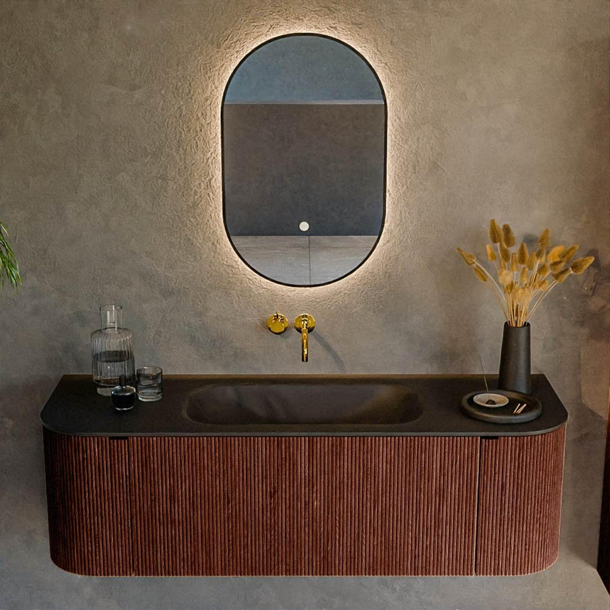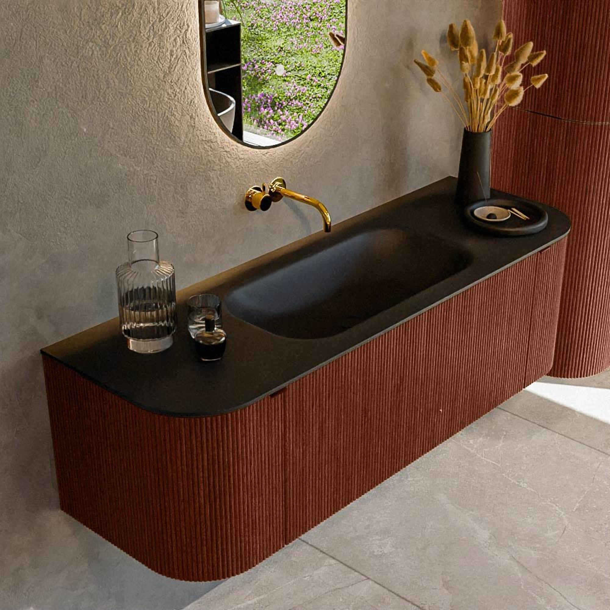 Mondiaz KURVE Ensemble de meuble salle de bain - 140x46x40cm - 1 tiroir - 2 portes - lavabo en solid surface - milieu - sans trou de robinet - Ruby