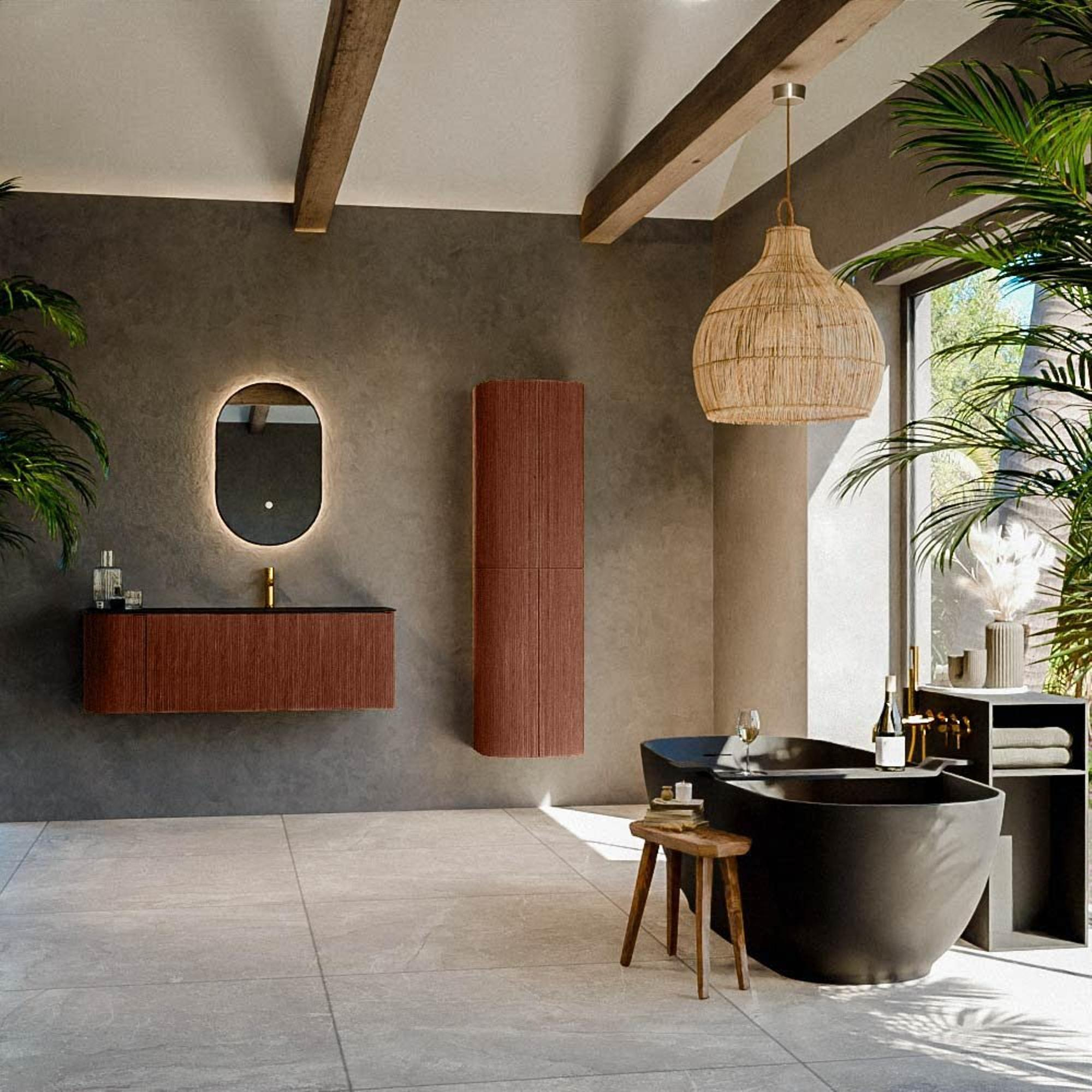 StyléLe caractère stylé de cet ensemble de meuble de salle de bain se retrouve dans chaque détail. Les lignes épurées et minimalistes sont combinées avec une surface de couleur Ruby chaude qui ajoute une atmosphère élégante à votre salle de bain. L'apparence moderne est renforcée par la combinaison subtile d'un design à 1 trou de robinet et du lavabo mince qui s'intègre parfaitement dans l'environnement. Cet ensemble de meuble stylé est conçu pour donner à l'espace une apparence moderne et raffinée, sans compromettre la fonctionnalité. La sélection soignée des couleurs et des matériaux en fait une pièce maîtresse parfaite pour toute salle de bain. Le matériau solid surface du lavabo ajoute non seulement une apparence luxueuse, mais offre également une surface facile à entretenir et hygiénique. Que vous ayez une routine matinale ou que vous souhaitiez simplement vous détendre, cet ensemble de meuble stylé transforme chaque salle de bain en une oasis de calme et de classe.