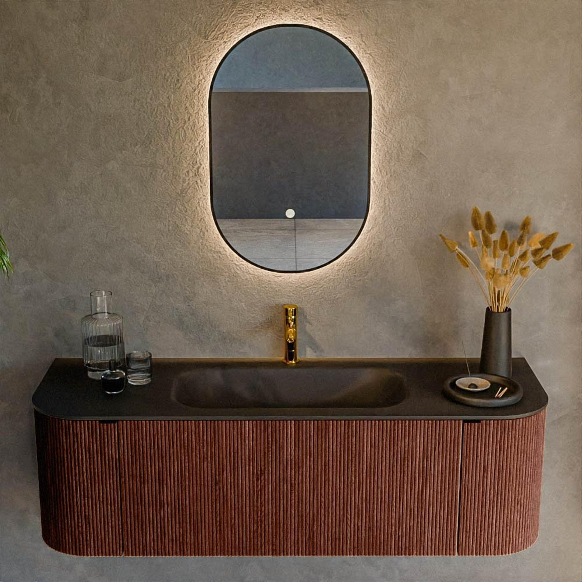 Mondiaz KURVE Ensemble de meuble salle de bain - 140x46x40cm - 1 tiroir - 2 portes - lavabo en solid surface - milieu - 1 trou de robinet - Ruby