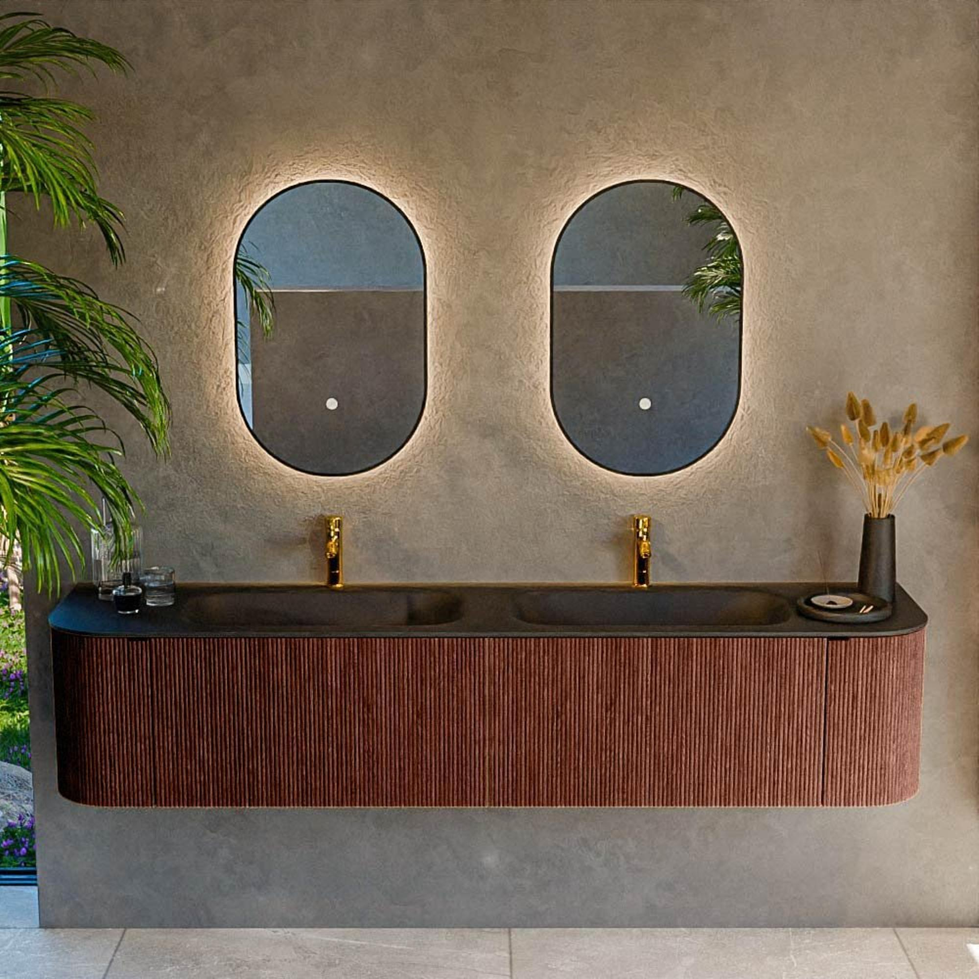 Mondiaz KURVE Ensemble de meuble salle de bain - 200x46x40cm - 2 tiroirs - 2 portes - lavabo en solid surface - double - 2 trous de robinet - Ruby