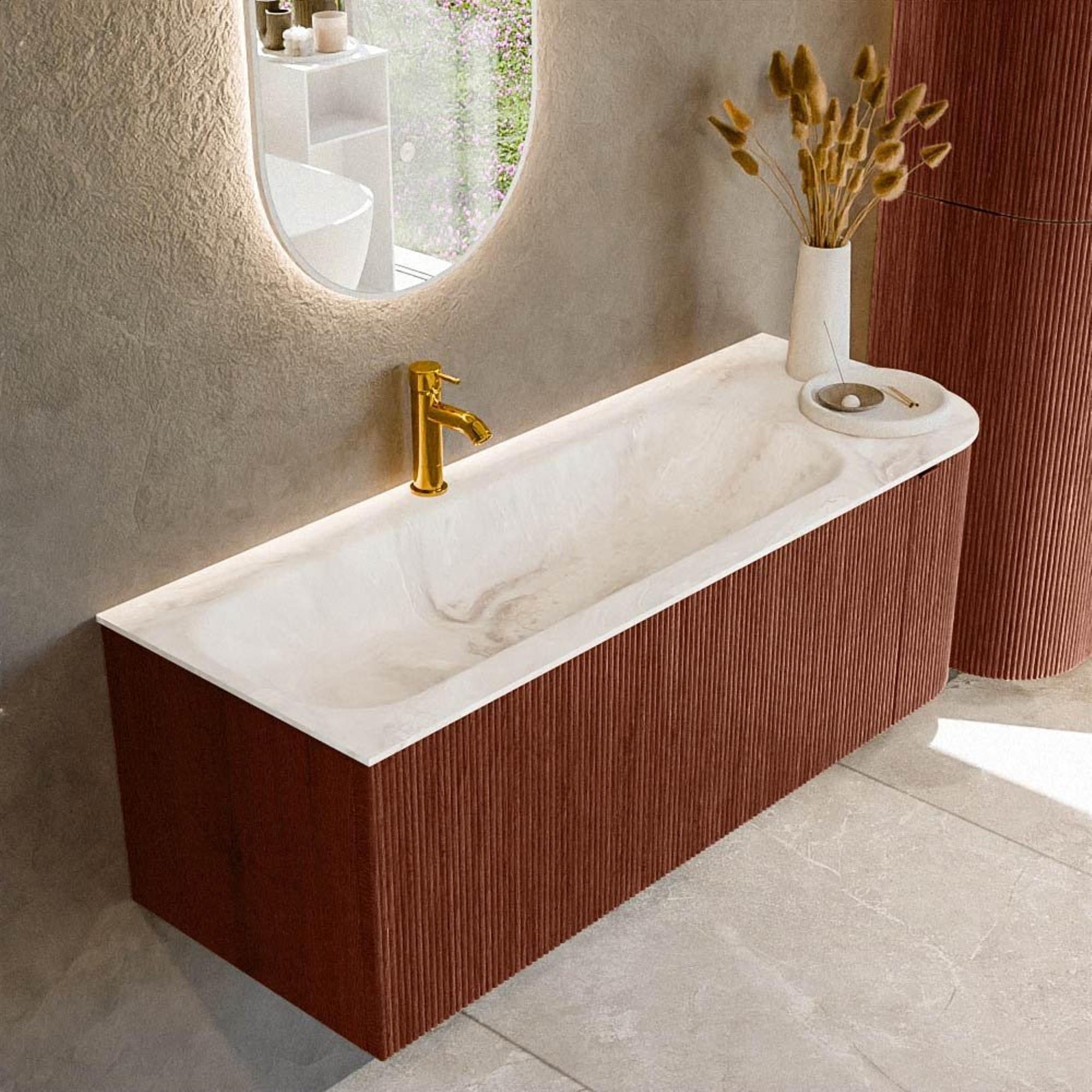 Ensemble de meuble de salle de bain Mondiaz KURVE-DLUX - 125x46x40cm - 1 tiroir - 1 porte - lavabo en solid surface - gauche - 1 trou de robinet - Ruby