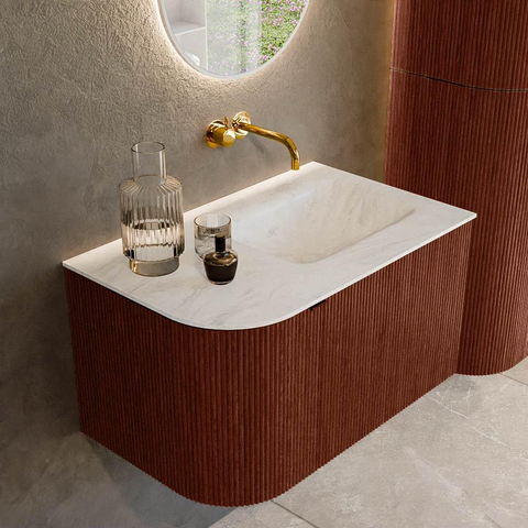 Ensemble de meuble de salle de bain Mondiaz KURVE-DLUX - 75x46x40cm - 1 tiroir - 1 porte - lavabo en solid surface - droite - sans trou de robinet - Ruby