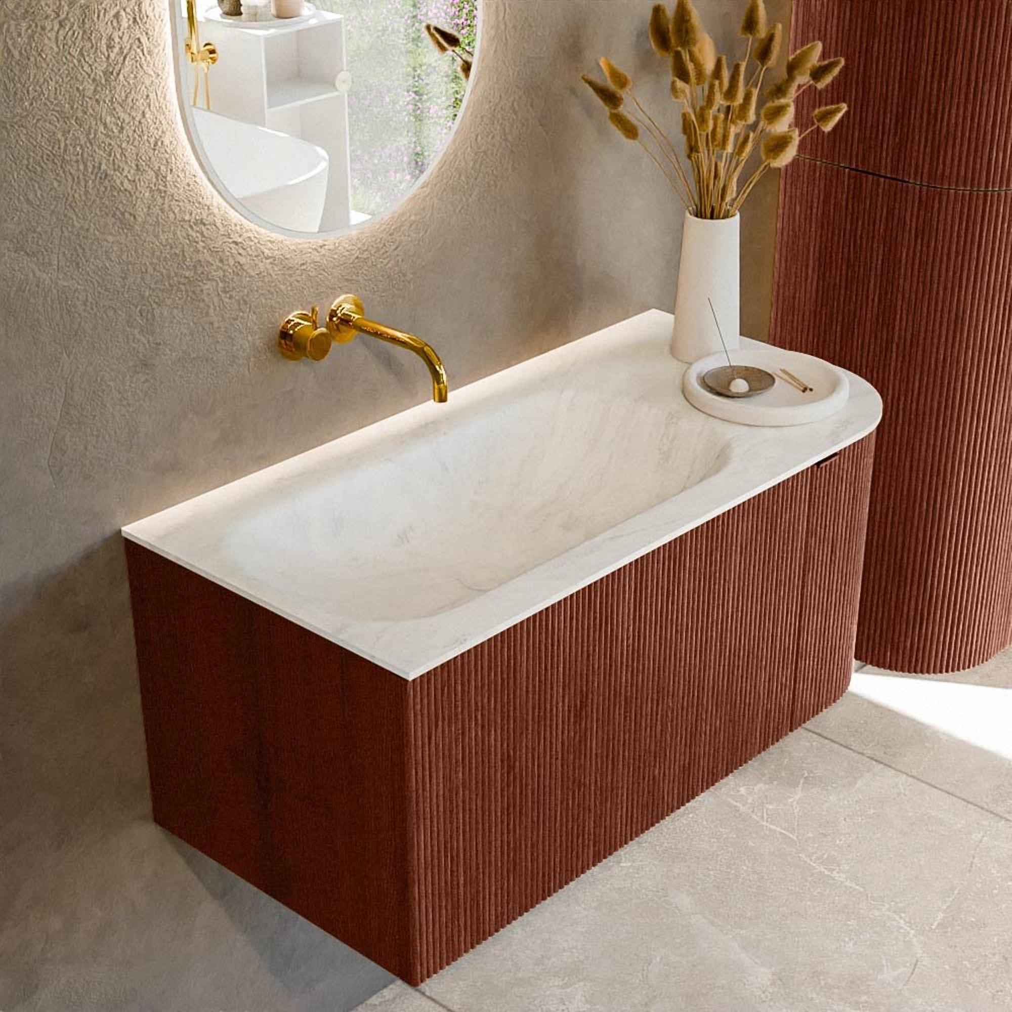 Ensemble de meuble de salle de bain Mondiaz KURVE-DLUX - 95x46x40cm - 1 tiroir - 1 porte - lavabo en solid surface - gauche - sans trou de robinet - Ruby