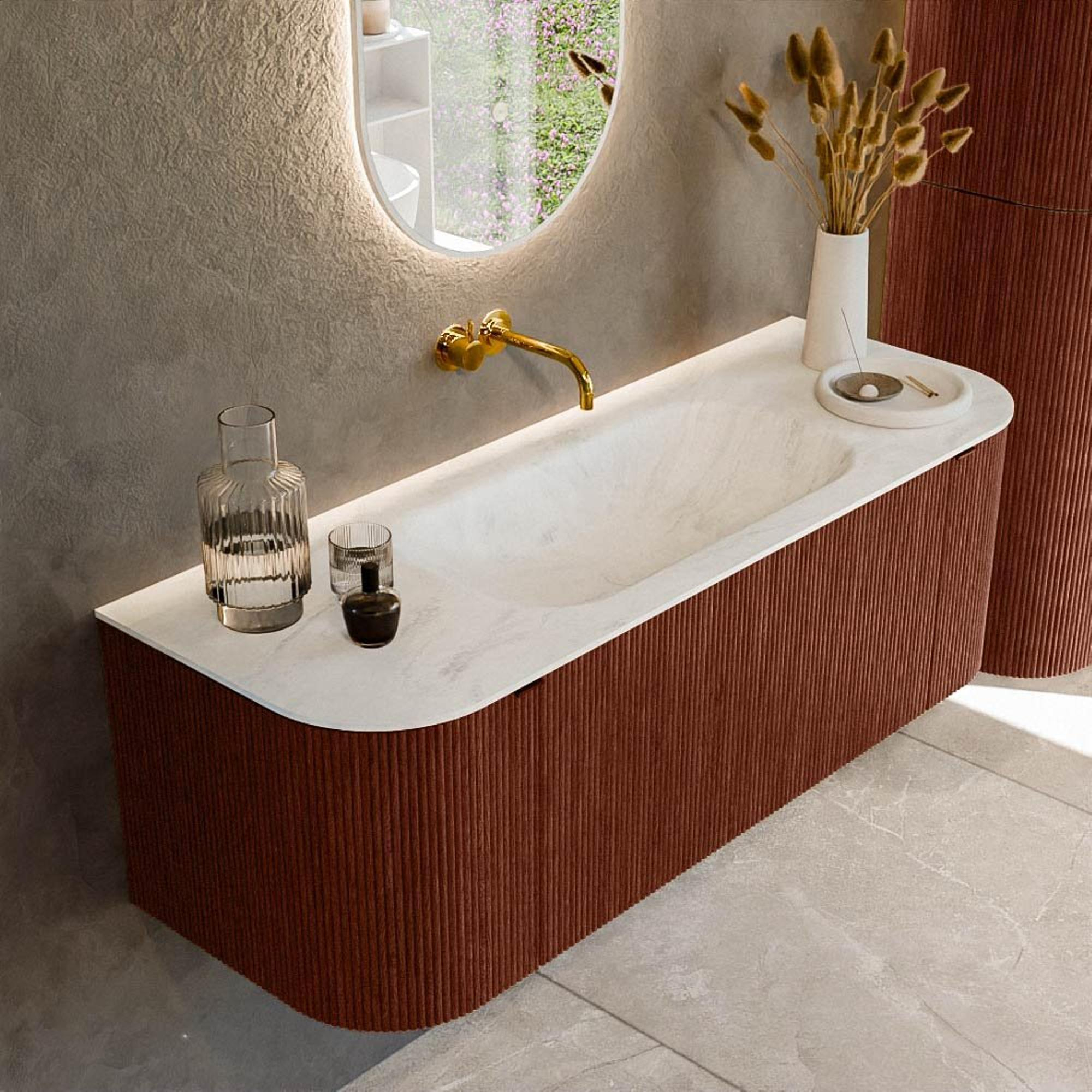 Mondiaz KURVE-DLUX Ensemble de meuble salle de bain - 130x46x40cm - 1 tiroir - 2 portes - lavabo en solid surface - milieu - sans trou de robinet - Ruby