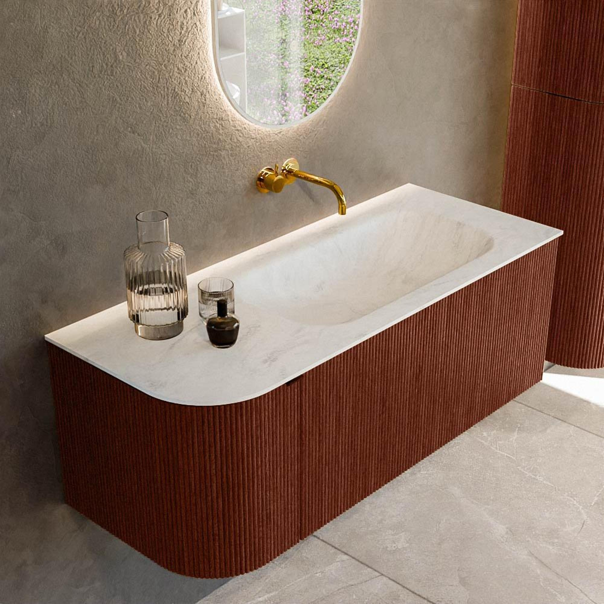 Mondiaz KURVE-DLUX Ensemble de meuble salle de bain - 115x46x40cm - 1 tiroir - 1 porte - lavabo en solid surface - droite - sans trou de robinet - Ruby