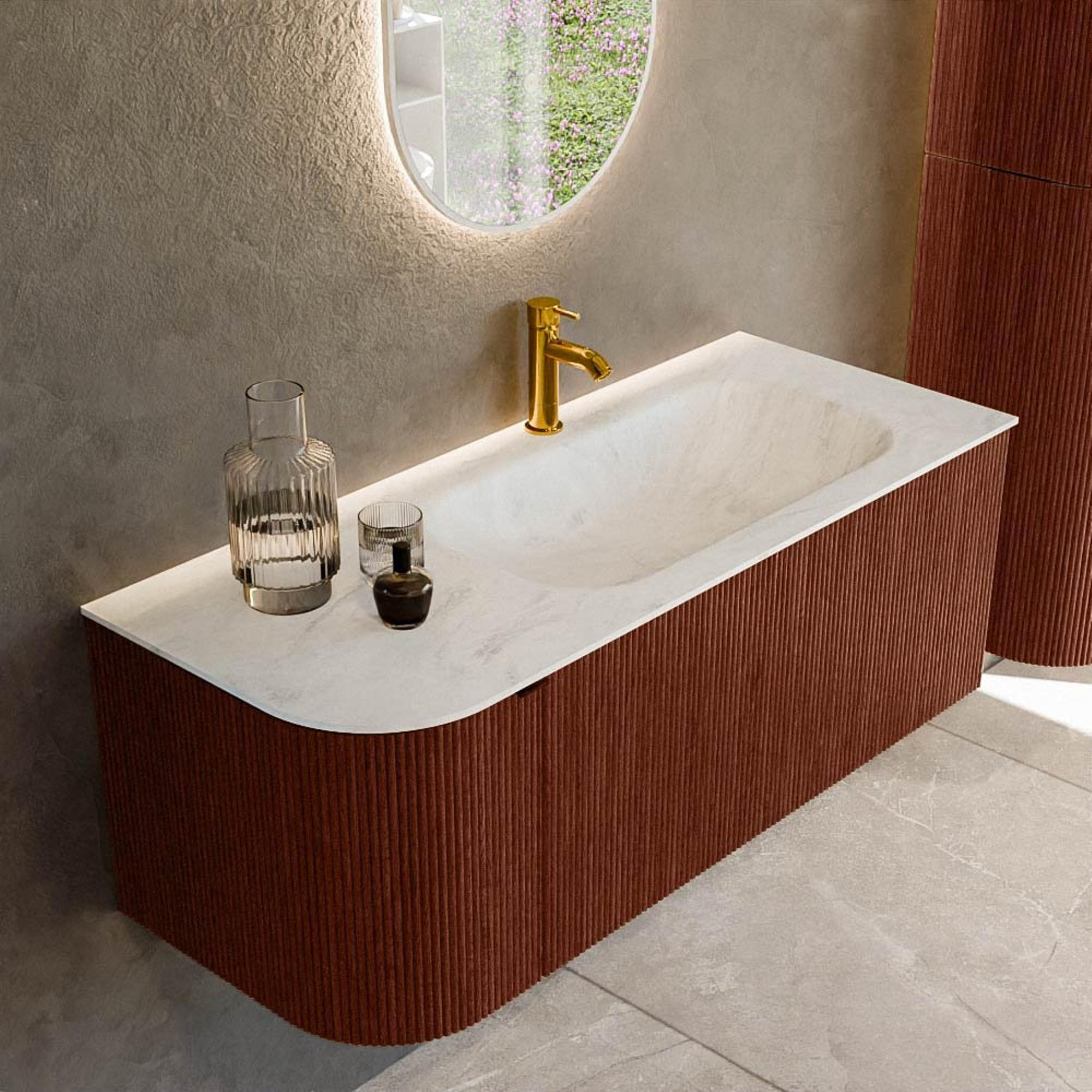 Ensemble de meuble de salle de bain Mondiaz KURVE-DLUX - 115x46x40cm - 1 tiroir - 1 porte - lavabo en solid surface - droite - 1 trou de robinet - Ruby