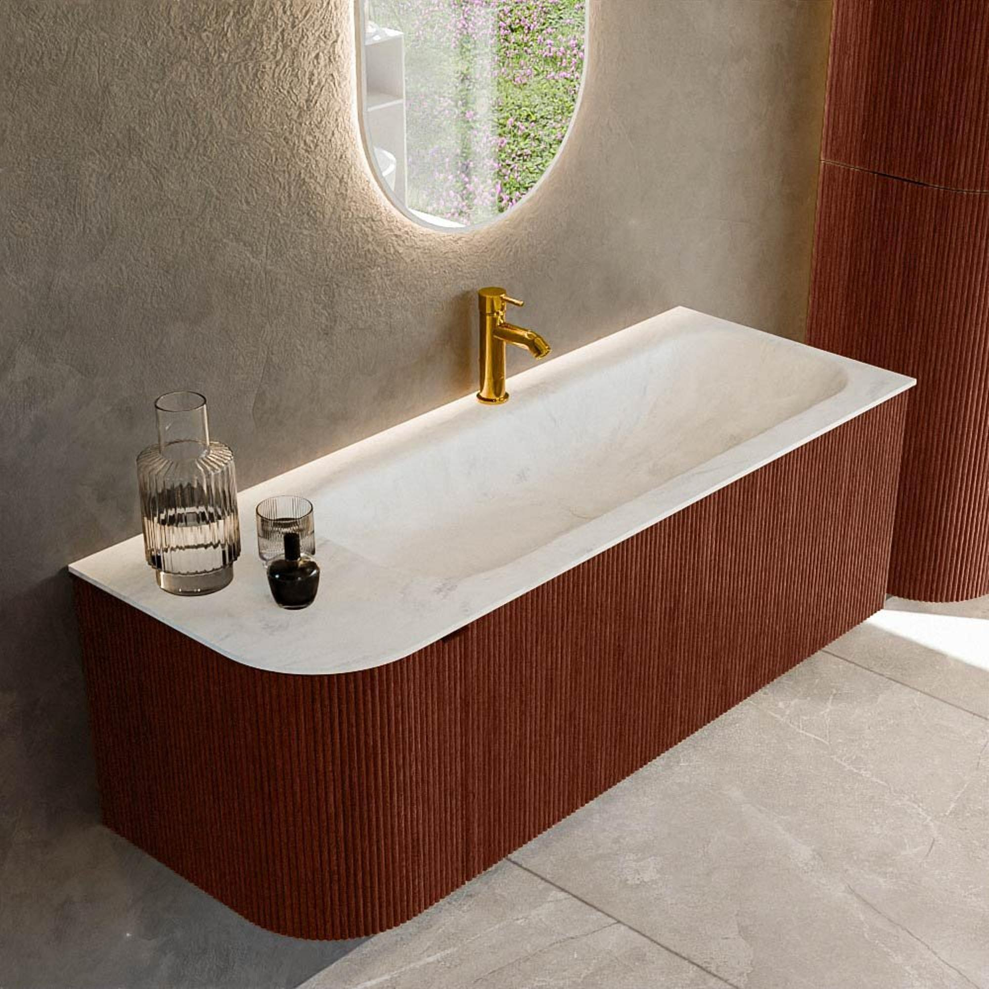 Mondiaz KURVE-DLUX Ensemble de meuble salle de bain - 125x46x40cm - 1 tiroir - 1 porte - lavabo en solid surface - droite - 1 trou de robinet - Ruby