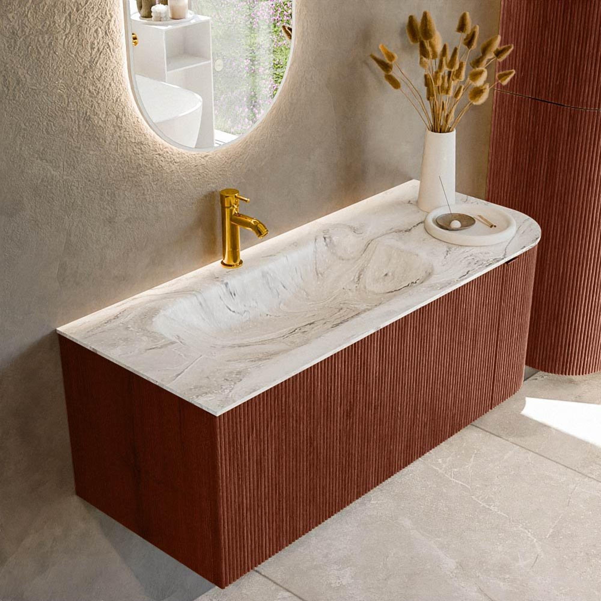 Mondiaz KURVE-DLUX Ensemble de meuble salle de bain - 115x46x40cm - 1 tiroir - 1 porte - lavabo en solid surface - gauche - 1 trou de robinet - Ruby