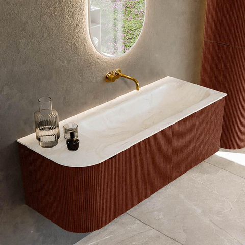 Mondiaz KURVE-DLUX Ensemble de meuble salle de bain - 125x46x40cm - 1 tiroir - 1 porte - lavabo en solid surface - droite - sans trou de robinet - Ruby