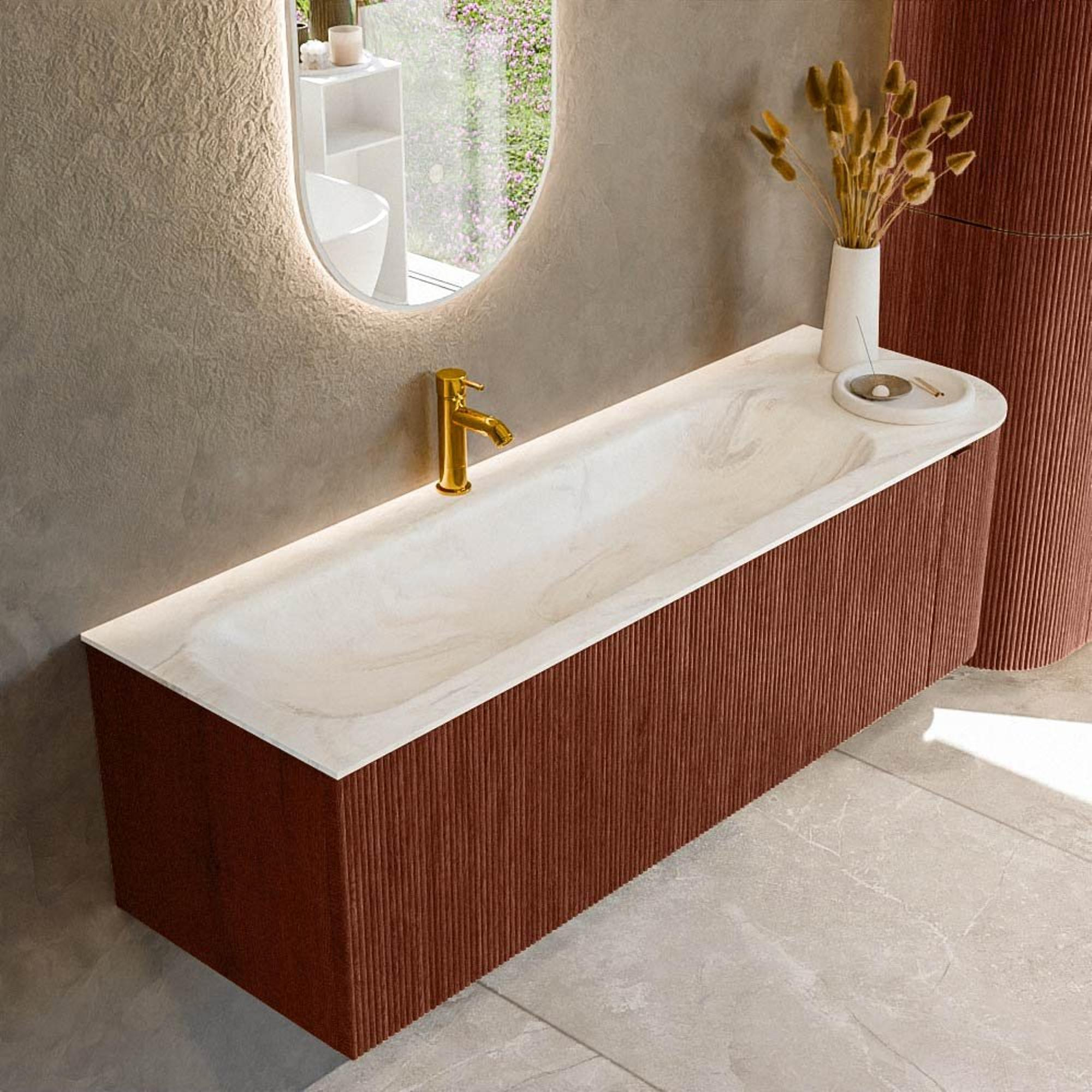 Ensemble de meuble de salle de bain Mondiaz KURVE-DLUX - 145x46x40cm - 1 tiroir - 1 porte - lavabo en solid surface - gauche - 1 trou de robinet - Ruby