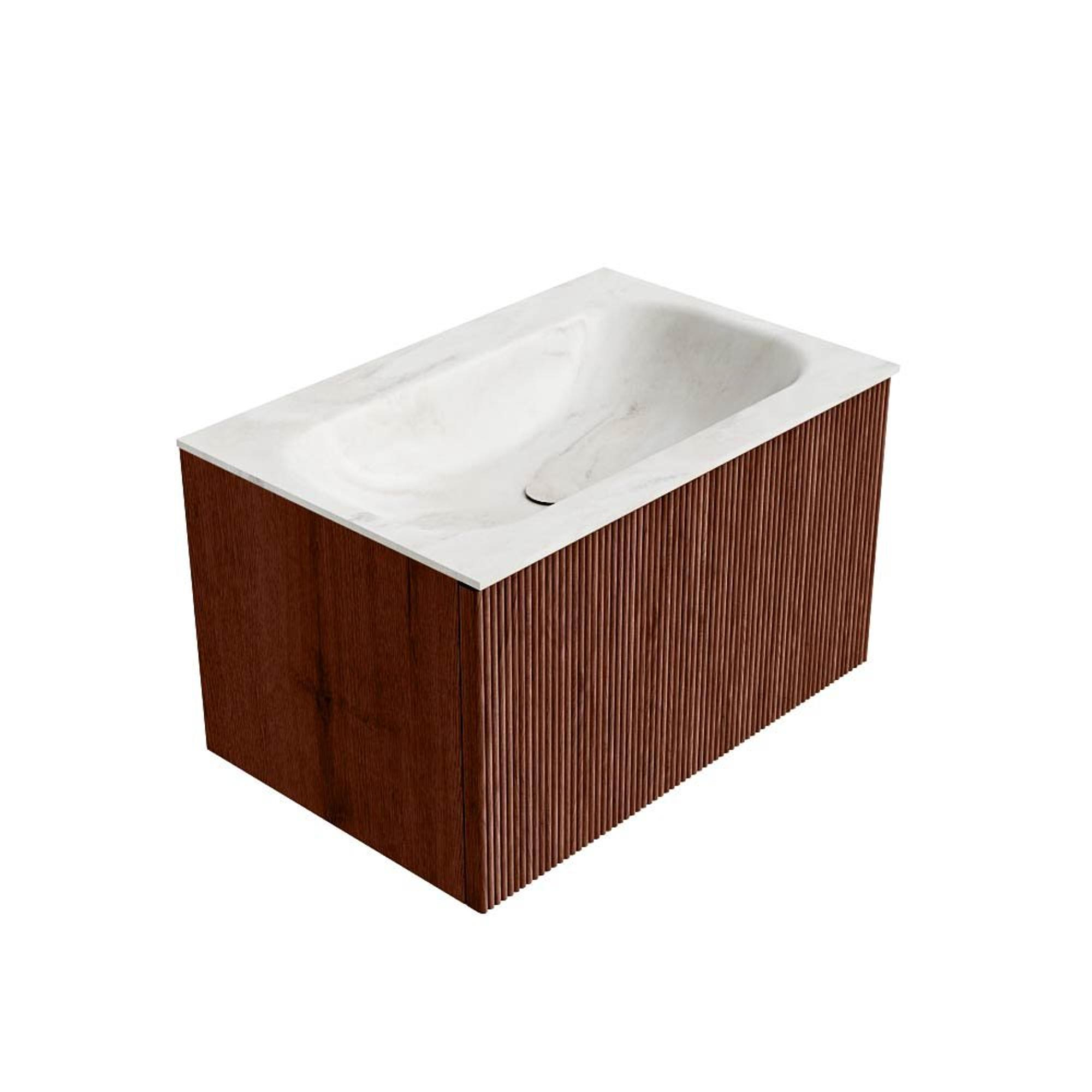 Mondiaz KURVE-DLUX Ensemble de meuble salle de bain - 70x46x40cm - 1 tiroir - lavabo en solid surface - milieu - sans trou de robinet - Ruby