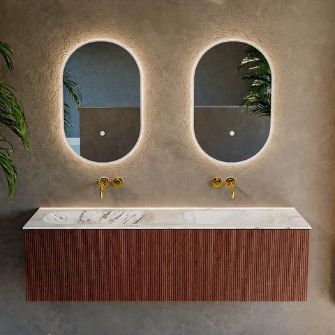 Mondiaz KURVE-DLUX Ensemble de meuble salle de bain - 150x46x40cm - 2 tiroirs - lavabo solid surface - double - sans trou de robinet - Ruby